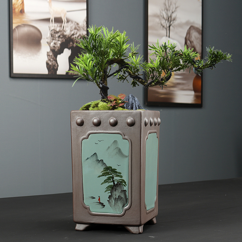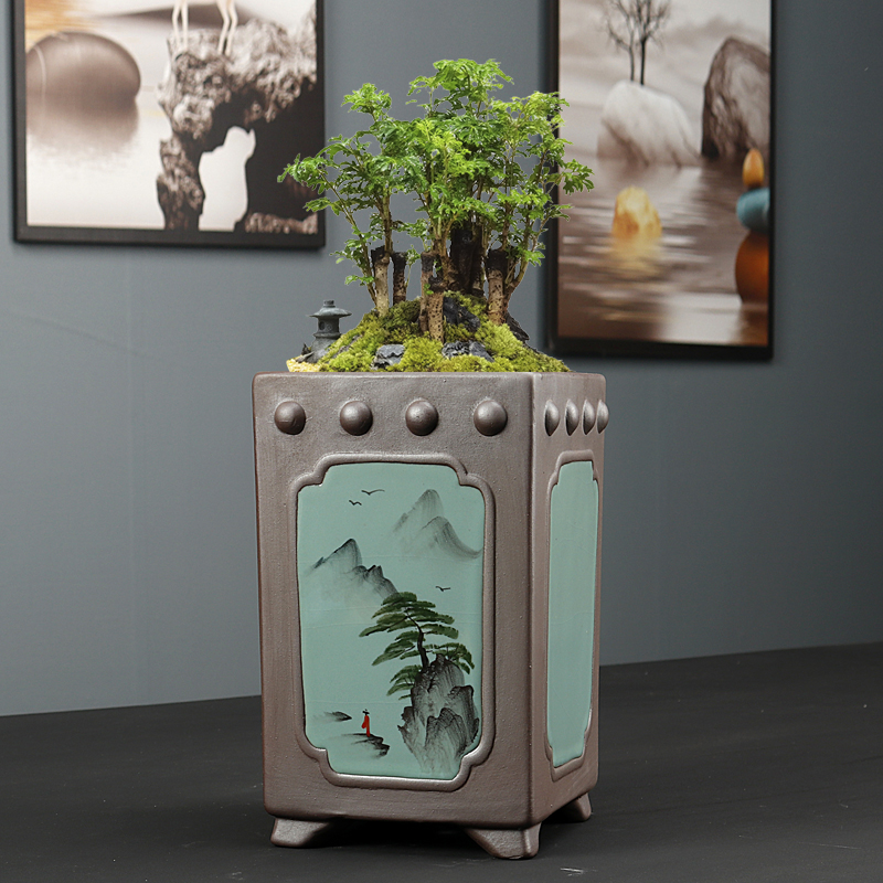 特大号手绘兰花盆惠兰墨兰紫砂陶瓷秞发财树悬崖桩四方签筒盆景盆
