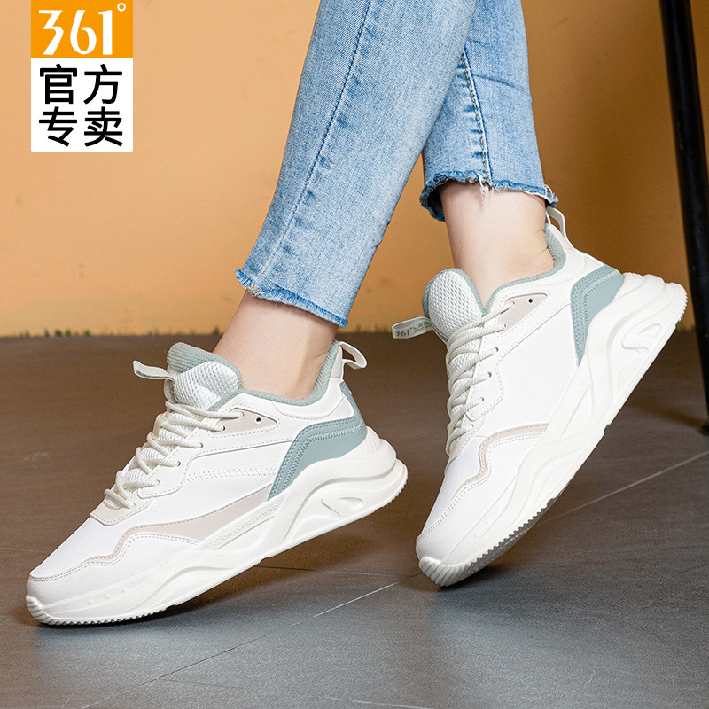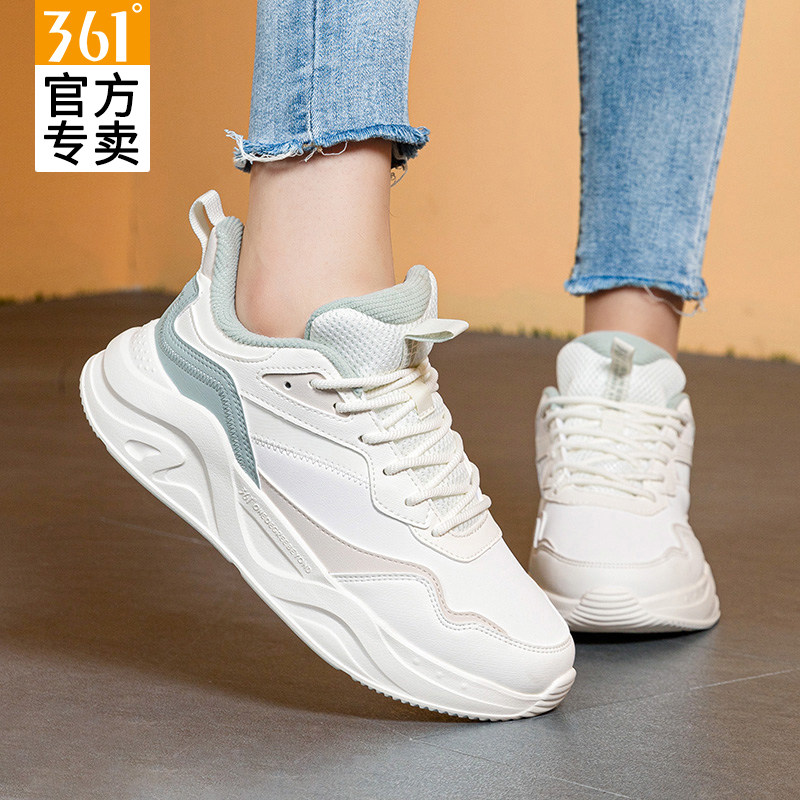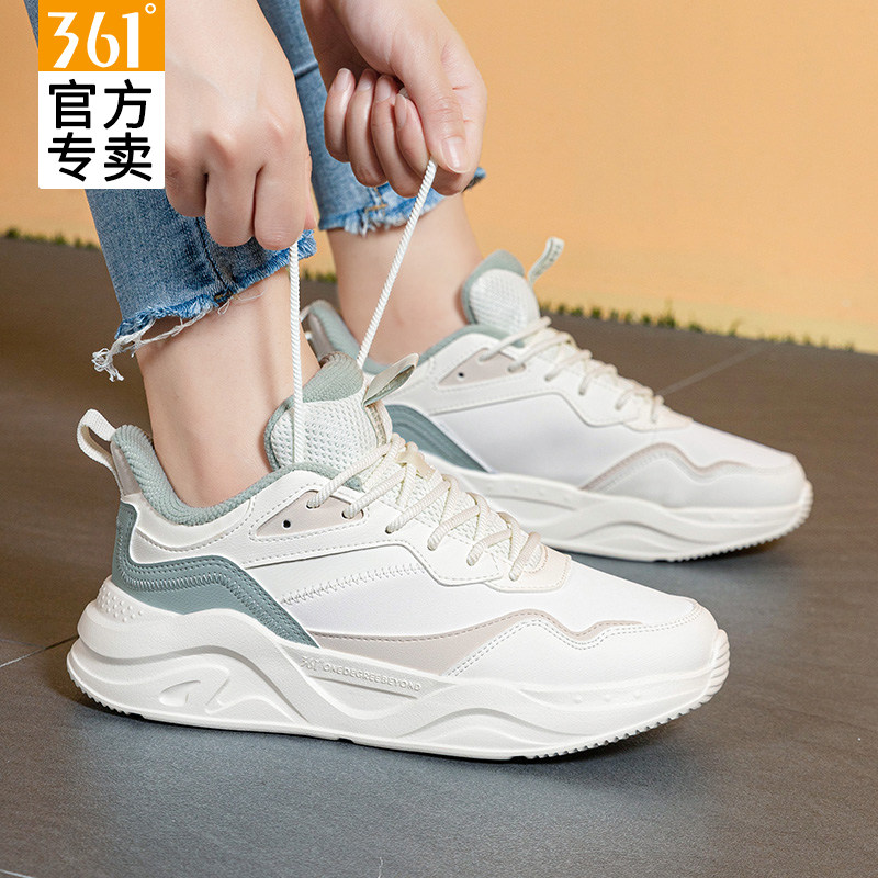 361女鞋运动鞋冬季新款皮面防水休闲鞋子女361度正品增高跑步鞋女