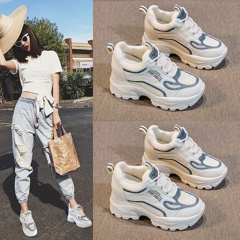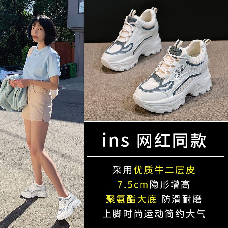 老爹女鞋子2025春季新款ins潮百搭春秋单鞋休闲运动内增高小白鞋