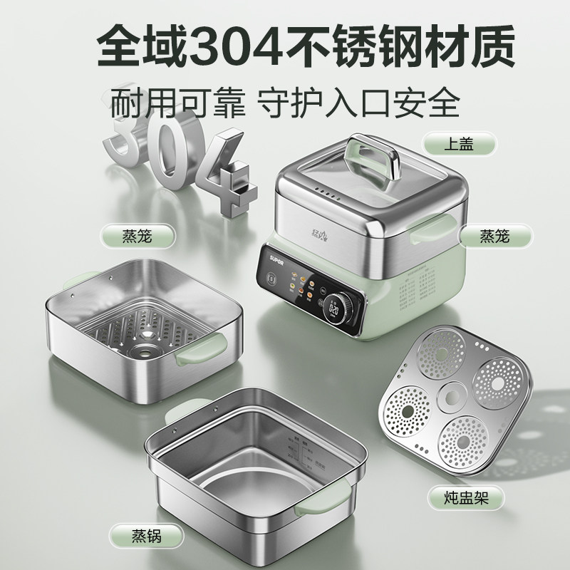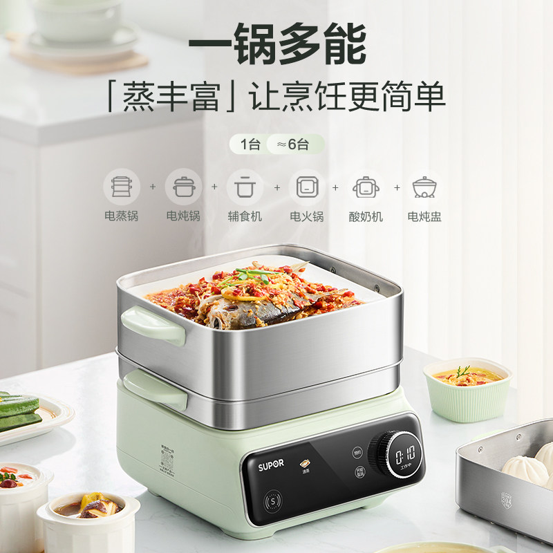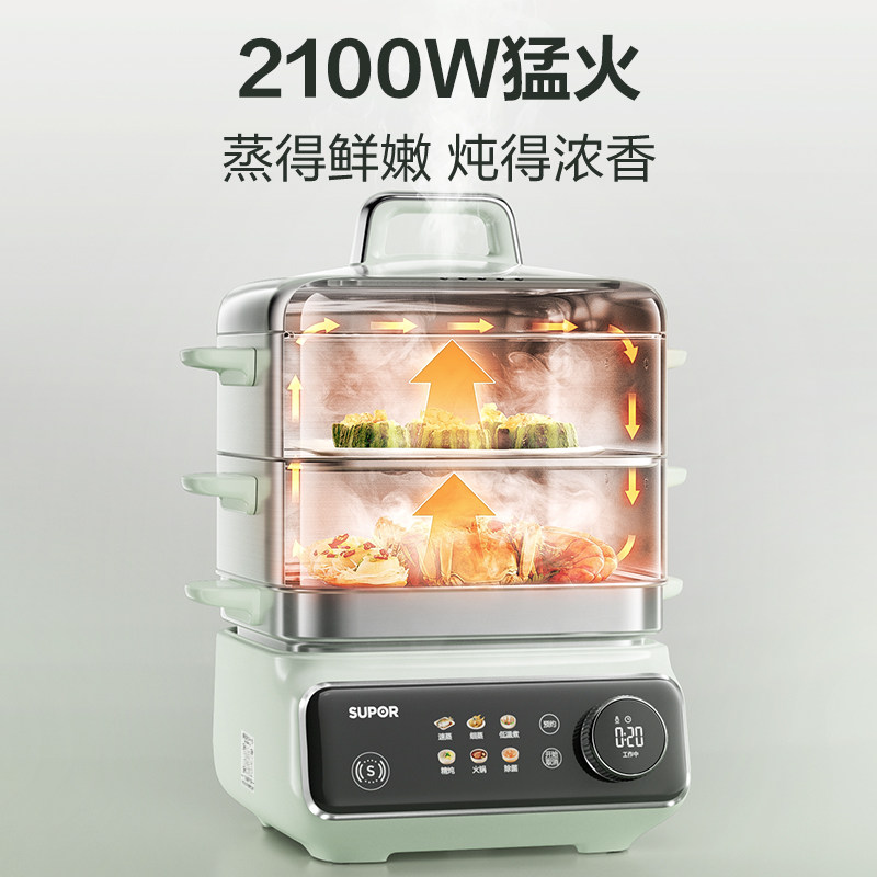 苏泊尔全钢电蒸锅多功能家用不锈钢一体锅多层大容量蒸笼旗舰新品