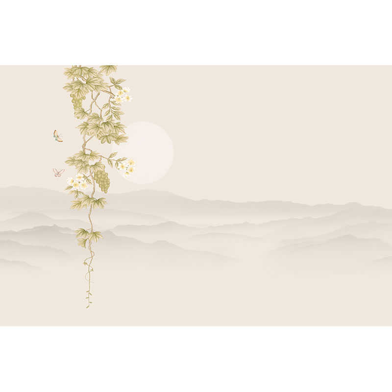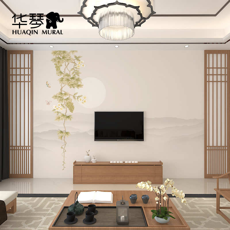 新中式电视背景墙壁纸客厅沙发卧室床头葡萄墙纸多子多孙墙布壁布