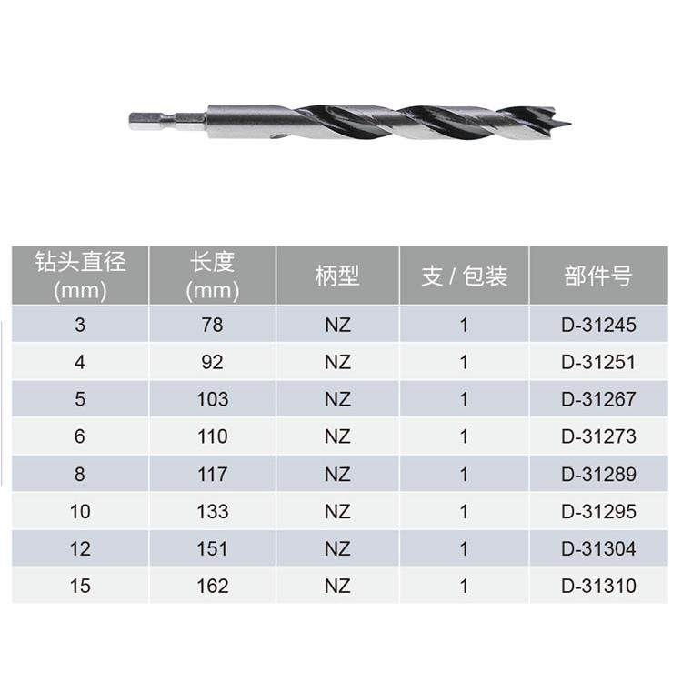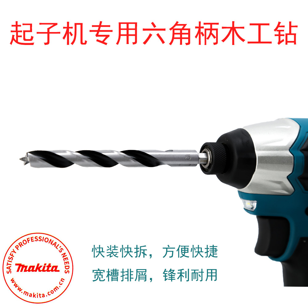 牧田六角柄木工专用钻头木头木材板材实木麻花钻起子电钻开孔打孔