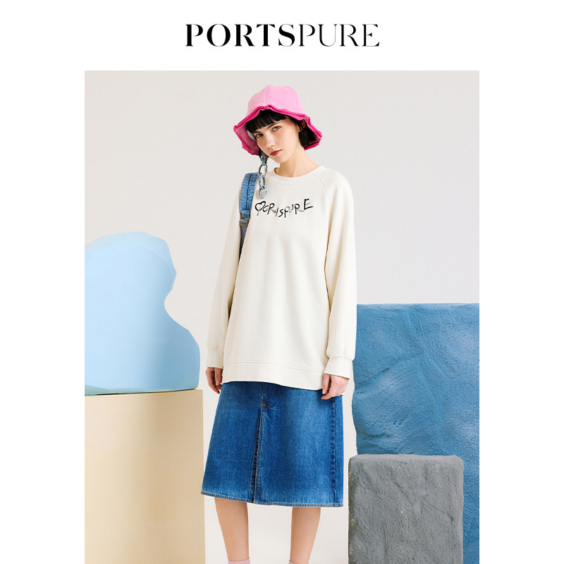 【大F推荐】宝姿PORTSPURE女装休闲日常刺绣贴片插肩卫衣上衣