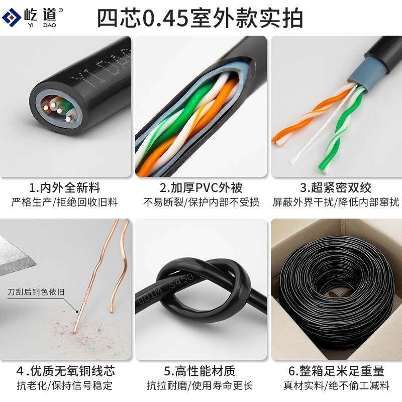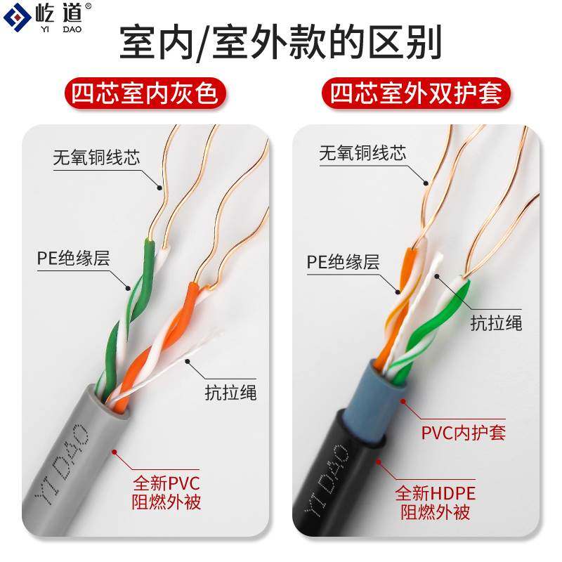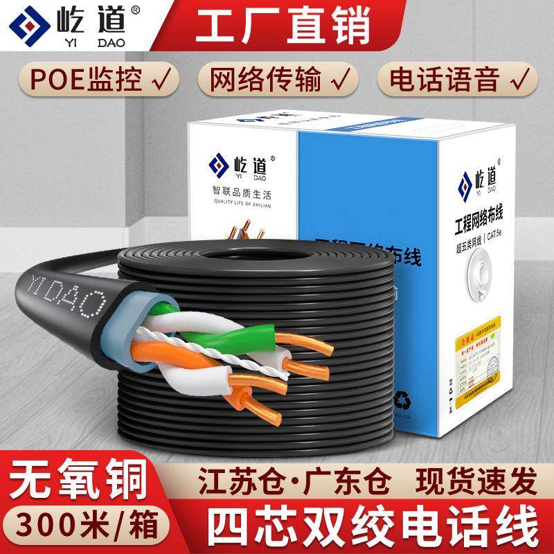 极速四芯无氧铜电话线4芯双绞RJ11网络工程室外阻水U监控纯铜300