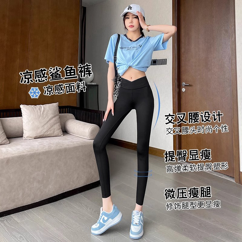 加长版高个子鲨鱼裤夏季薄款外穿收腹裤强压瘦腿高腰瑜伽打底裤子