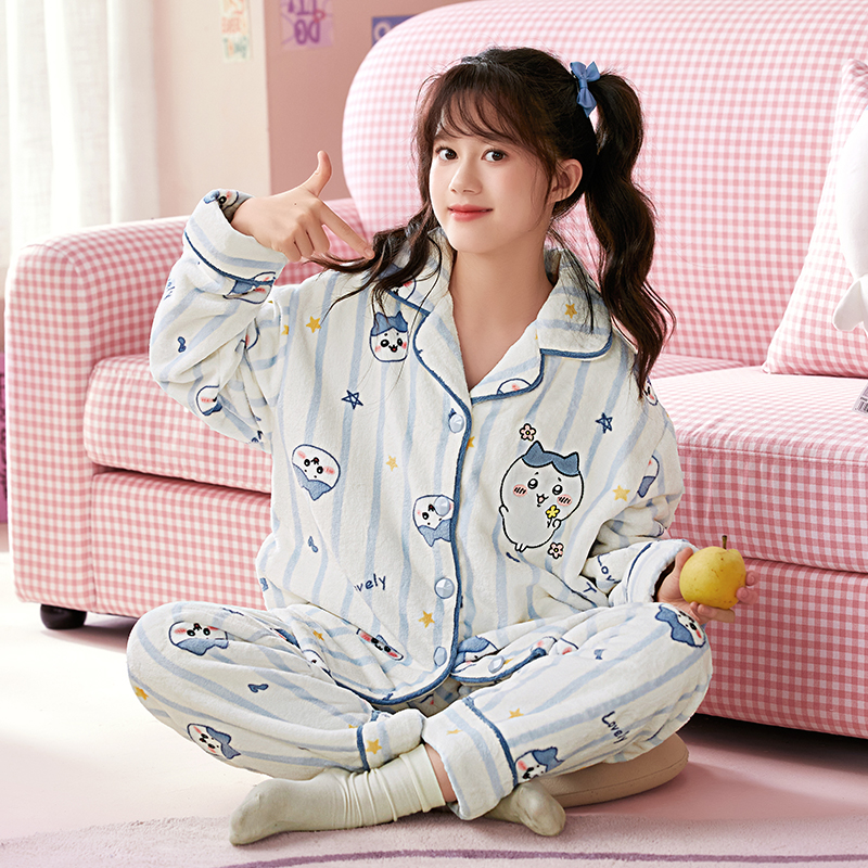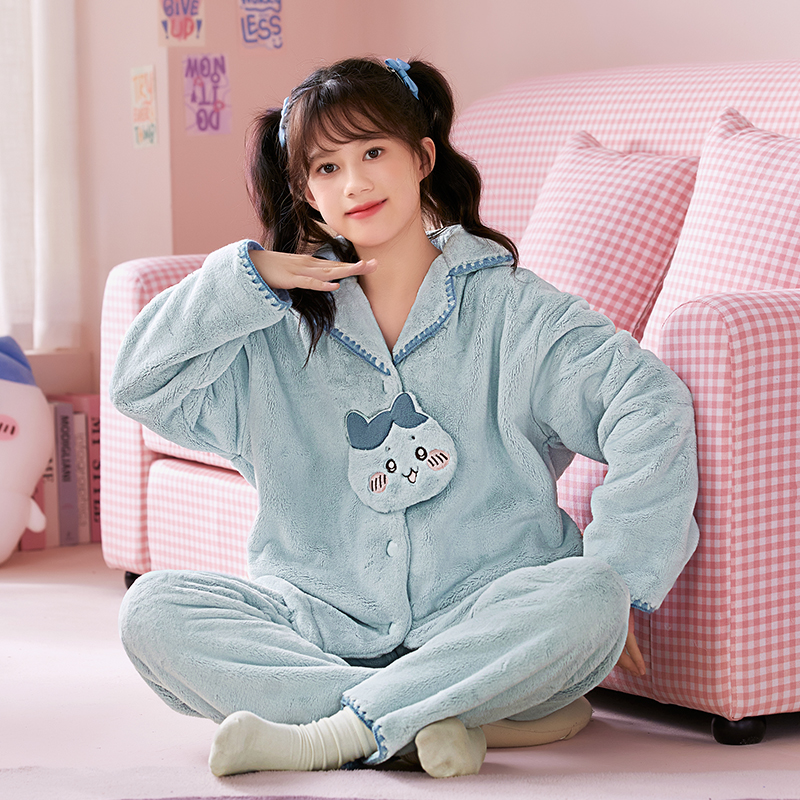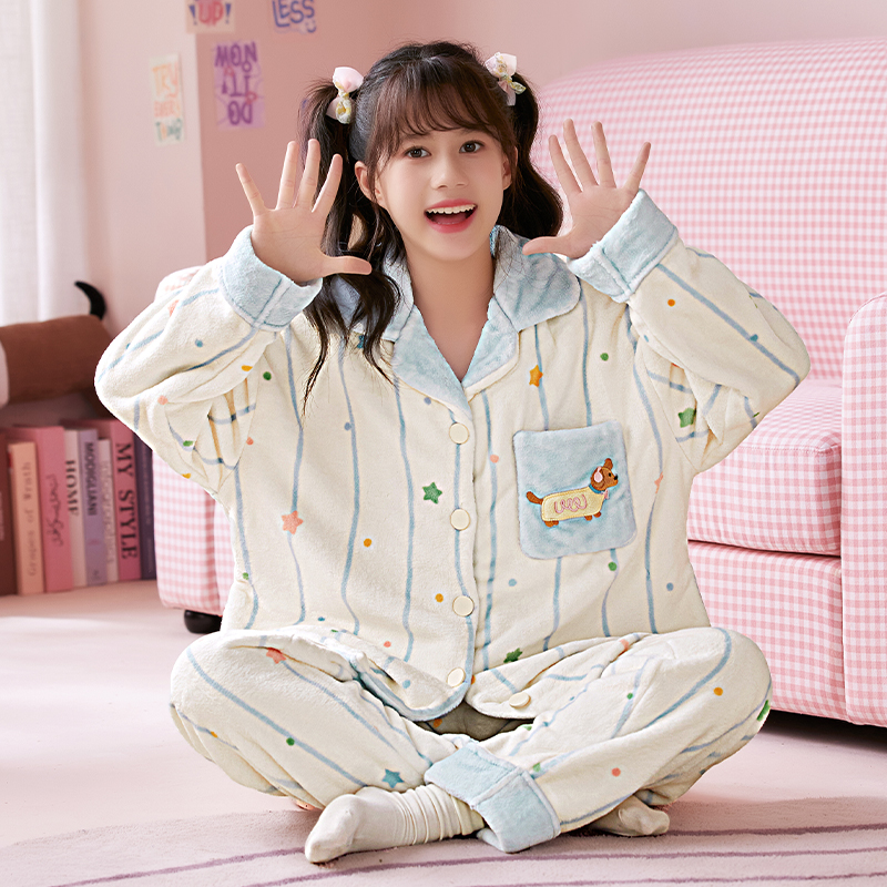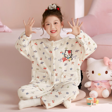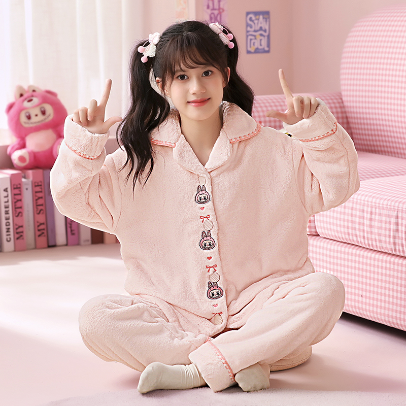 女童珊瑚家居服秋冬季宝宝儿童女孩法兰绒卡通新款加厚睡衣套装