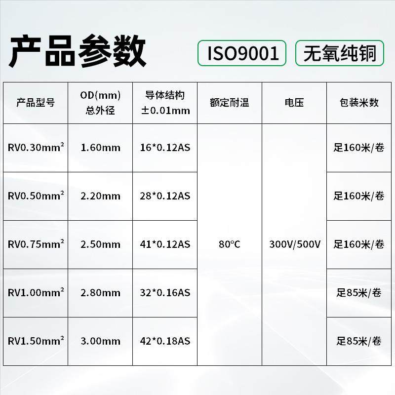 纯铜单芯多股软线RV线0./0.5/0.75绝缘导线电子线无氧铜控制线