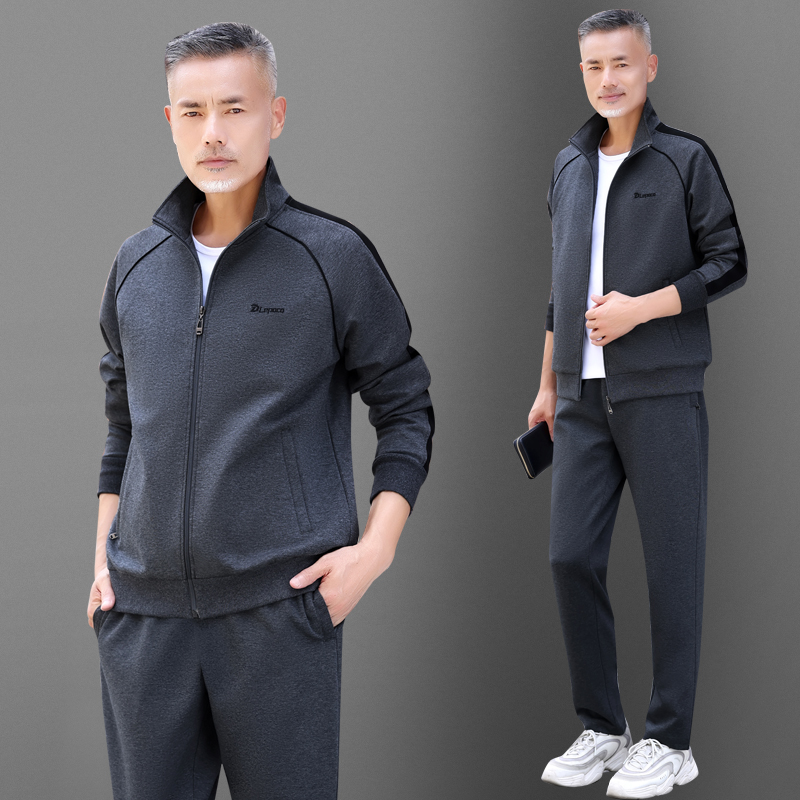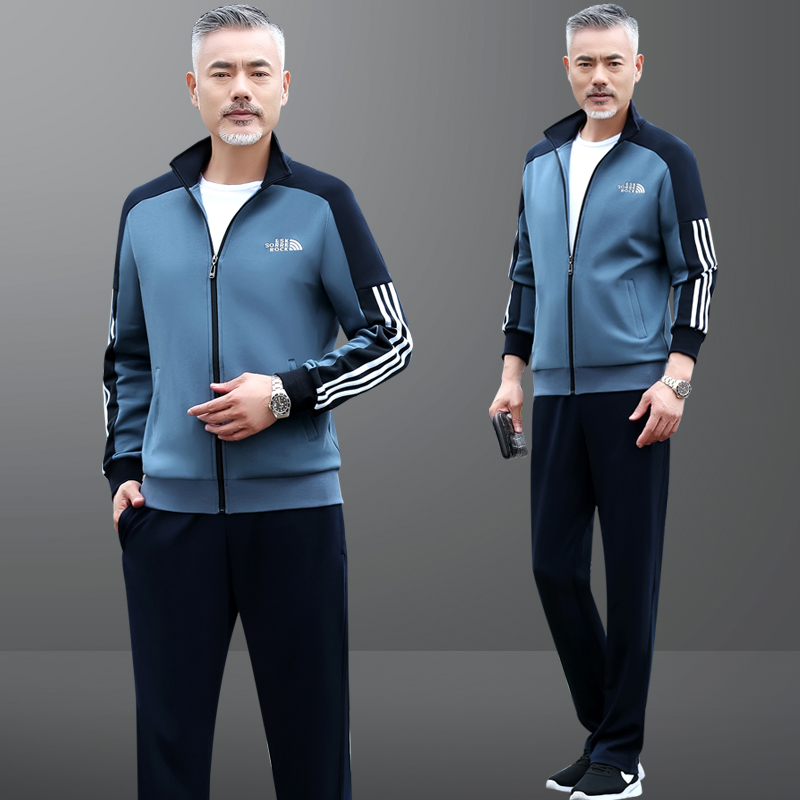 爸爸春装中老年休闲运动服套装男士春秋季爸爸装父亲开衫两件套棉