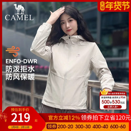 骆驼运动防风夹克外套女春秋情侣连帽防泼水休闲外套运动保暖茄克