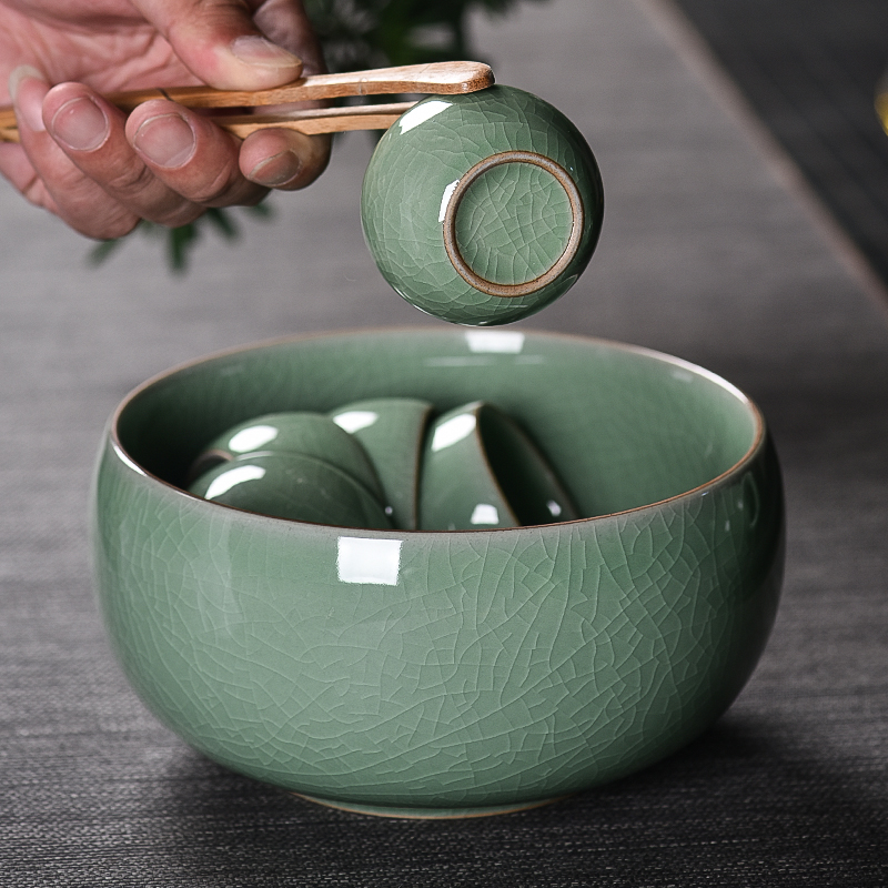 龙泉哥窑青瓷茶洗家用功夫茶具茶道杯洗大水洗陶瓷文房笔洗烟灰缸