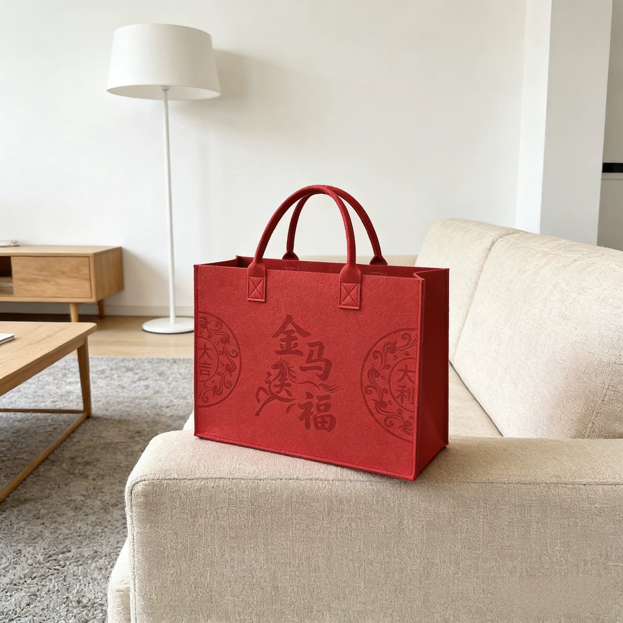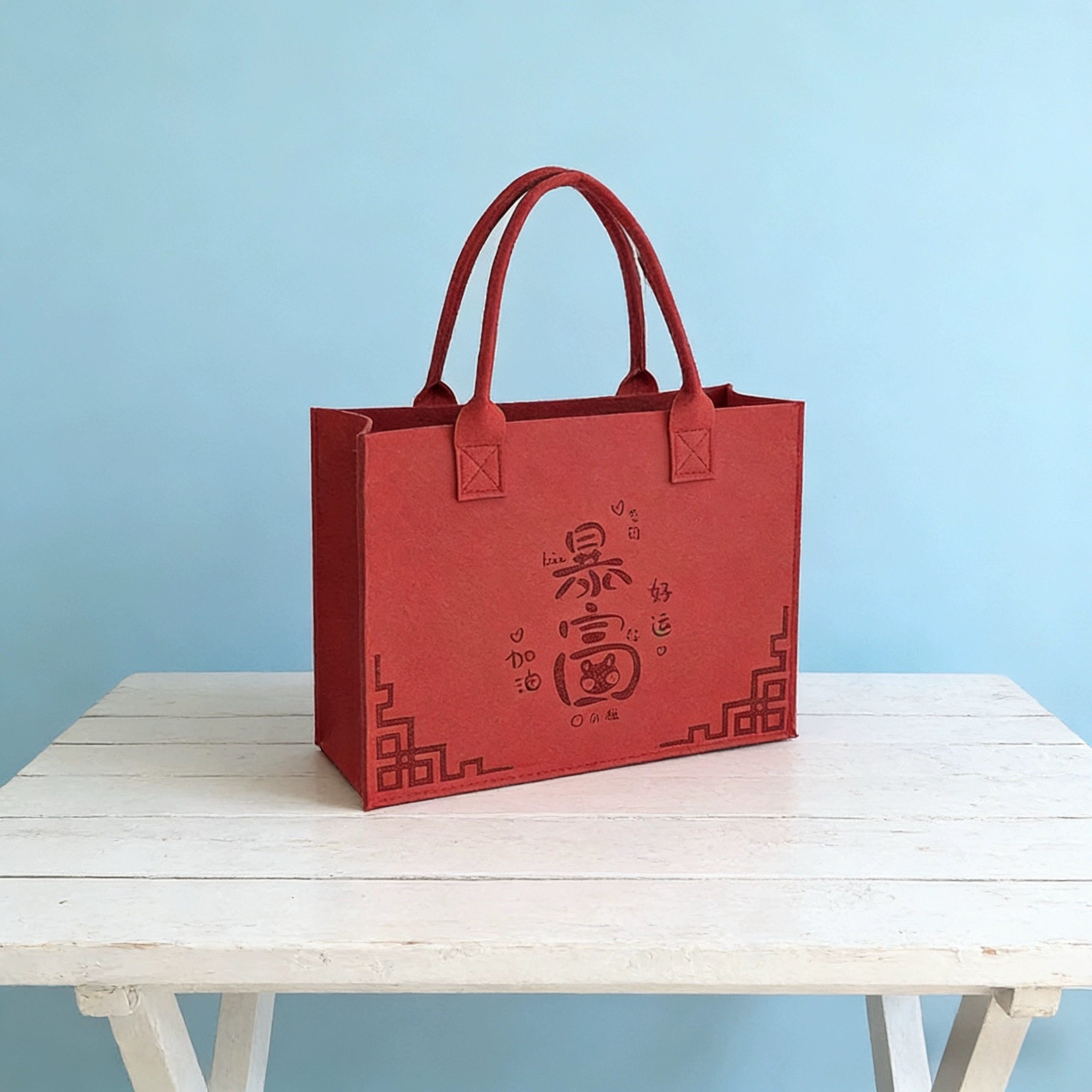 毛毡包红色手提袋定制logo企业宣传礼品袋大容量伴手礼手拎通用包