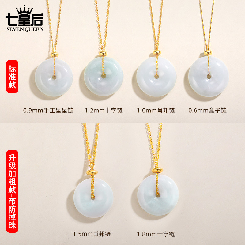 925纯银配平安扣专用项链万能链子18k金挂绳穿翡翠和田玉吊坠配链