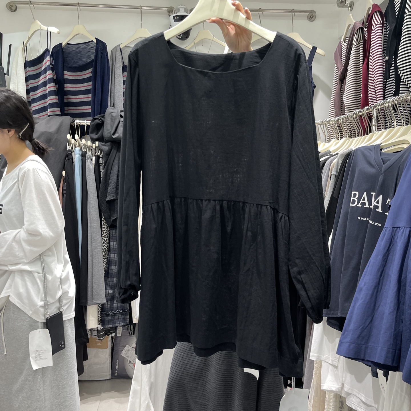 大码女装白色方领中长款长袖衬衫女2025秋季新款胖MM宽松显瘦小衫