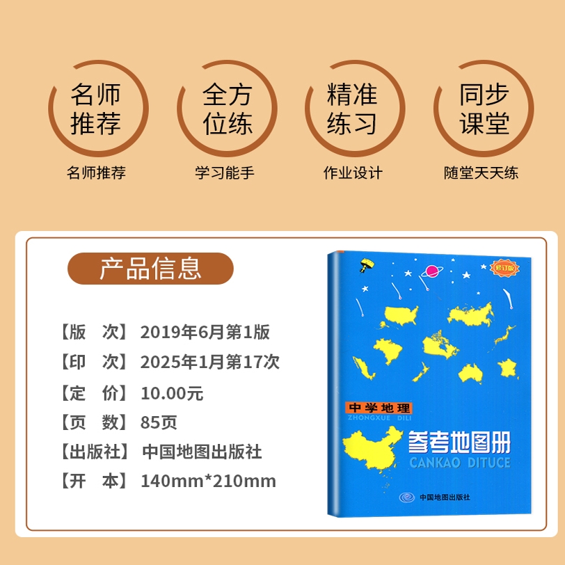 DQ2025中学地理参考地图册 修订版初中高中地理教辅学习宝典 自然人文世界中国地理提分中学生地理工具书 中国地图出版社