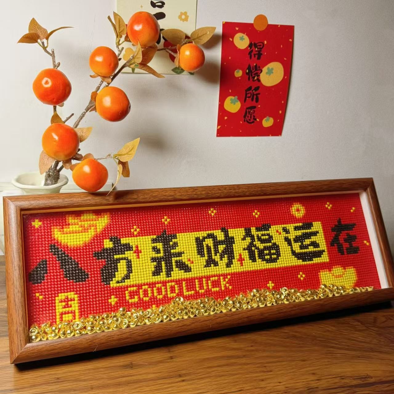 新中式手工DIY钻石画喜庆字画摆台带框满钻八方来财乔迁摆件礼物