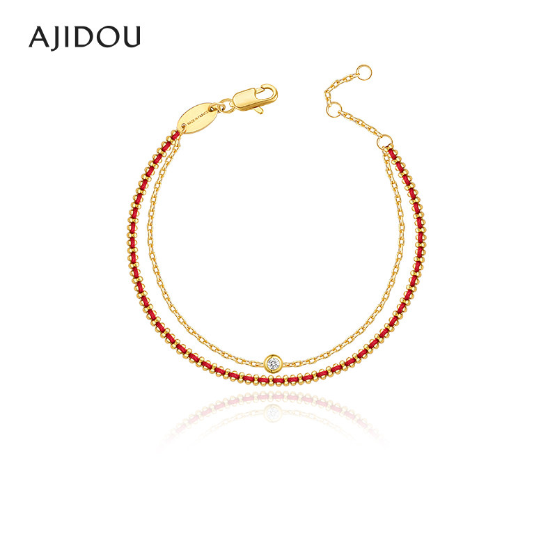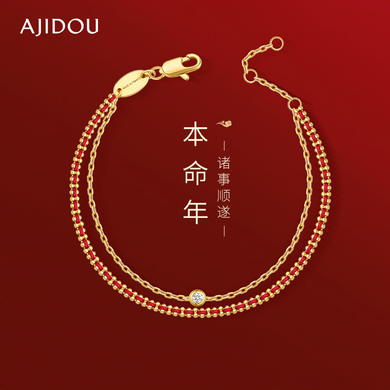 AJIDOU阿吉豆红绳手链女款马年本命年编织手绳双层叠带情侣款首饰