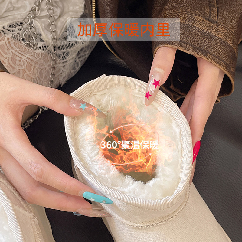 白色厚底雪地靴女2025年新款冬季加绒加厚防水防滑保暖面包大棉鞋