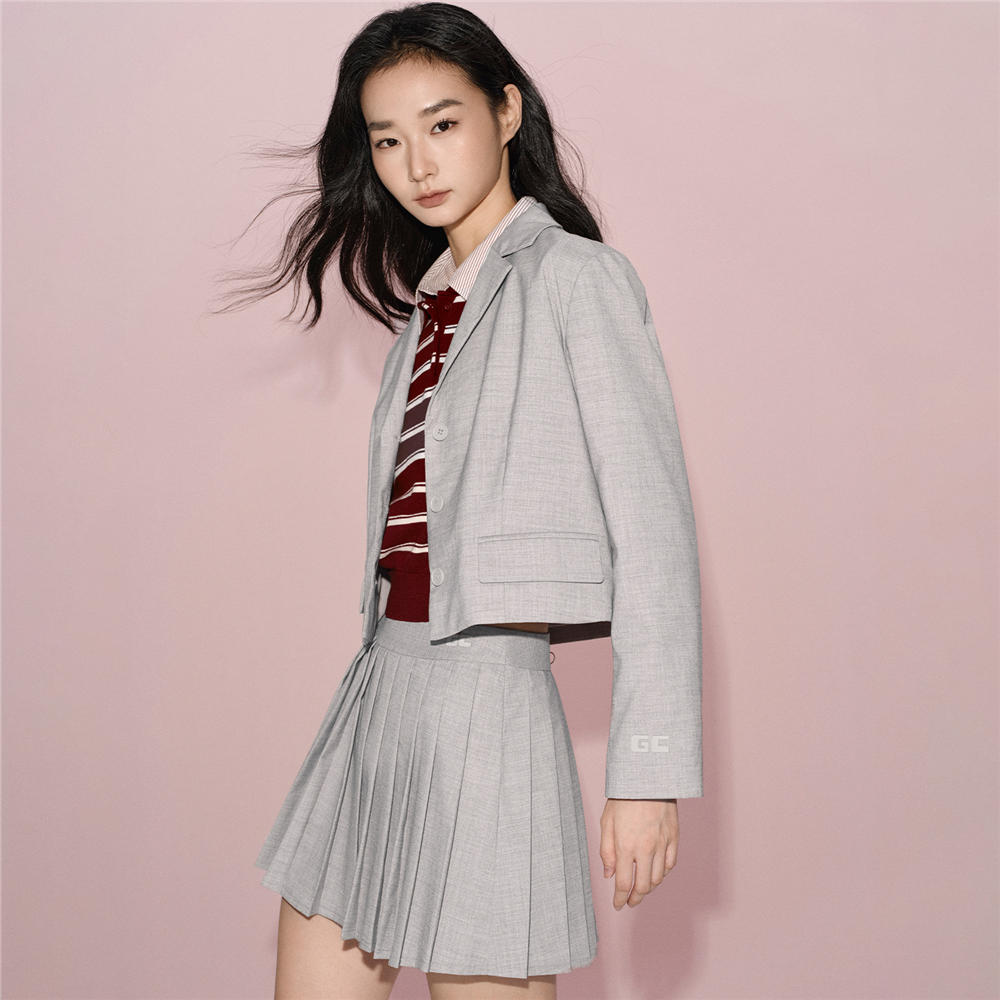 GC2025女装秋冬新款正肩西装外套品牌印花平驳领短款西服12375008