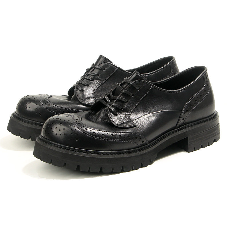 复古马皮布洛克雕花皮鞋手工擦色做旧工装时尚潮流休闲男鞋厚底