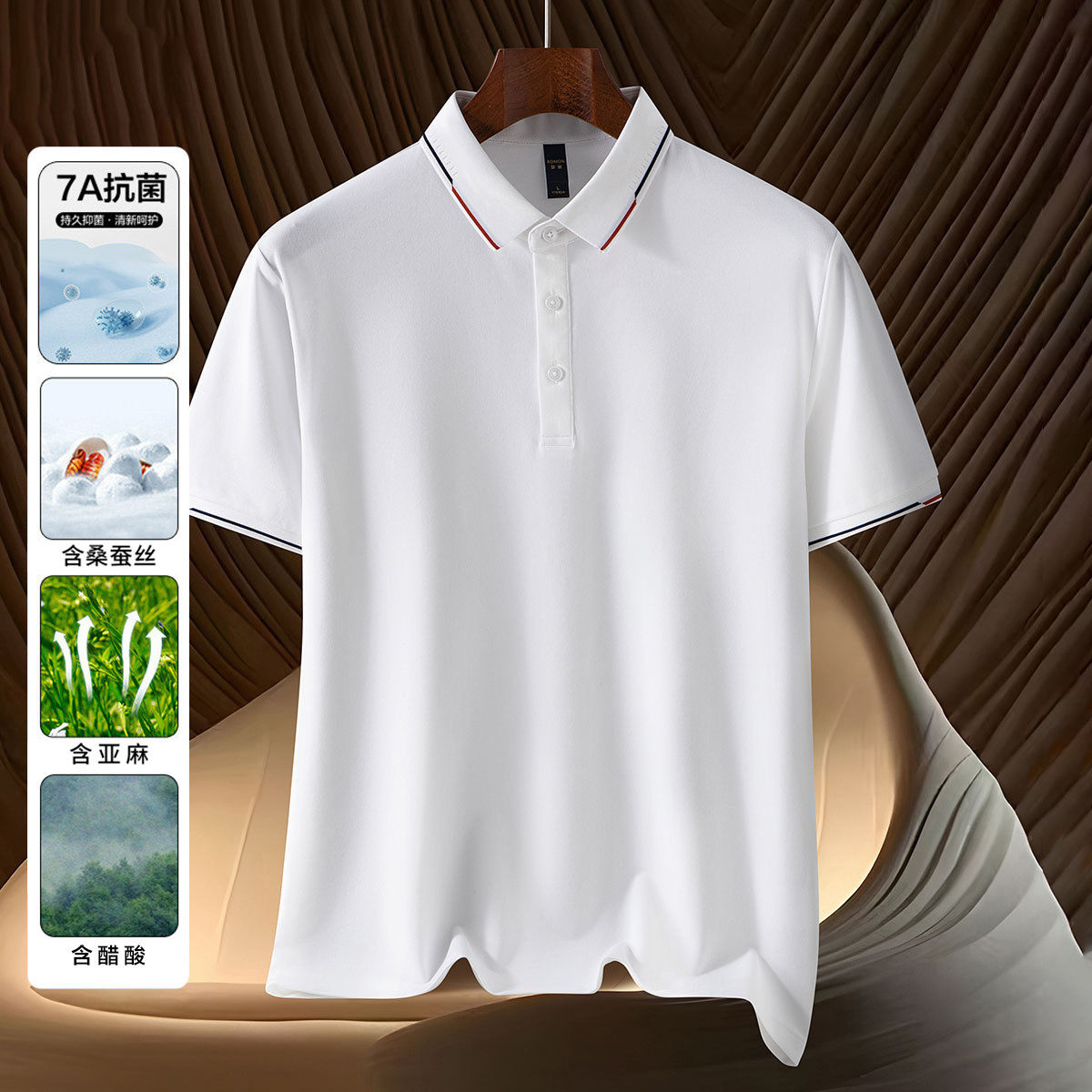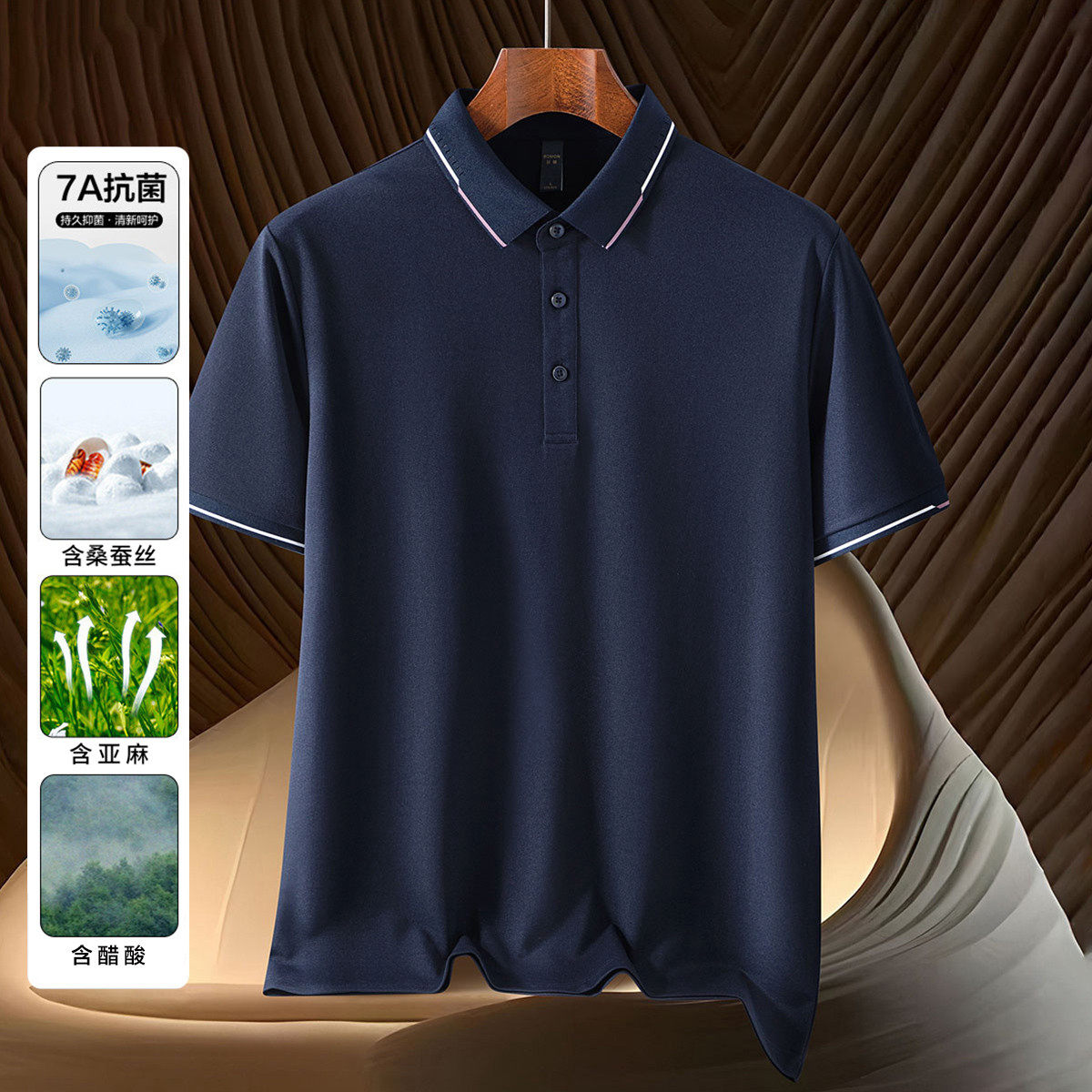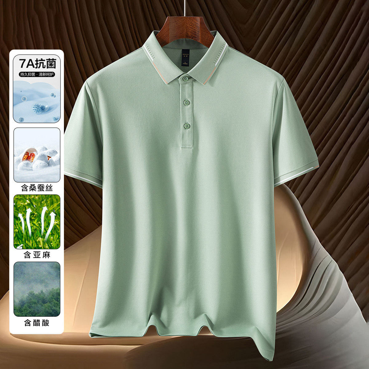 罗蒙7A抗菌夏男士桑蚕丝亚麻棉醋酸丝短袖polo衫高级商务纯色T恤
