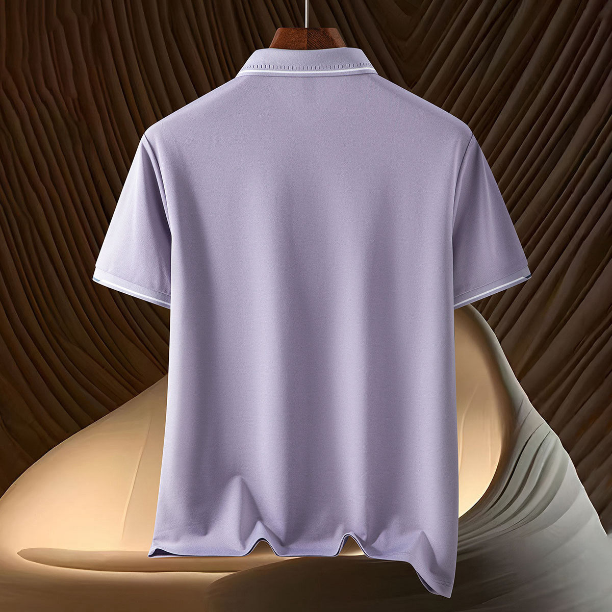 罗蒙桑蚕丝亚麻棉醋酸短袖POLO衫