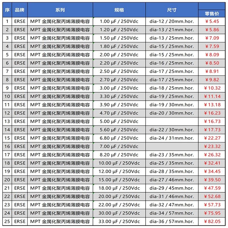 ERSE MPT 金属化聚丙烯薄膜无极电容发烧级1.0uF~33uF分频器配件