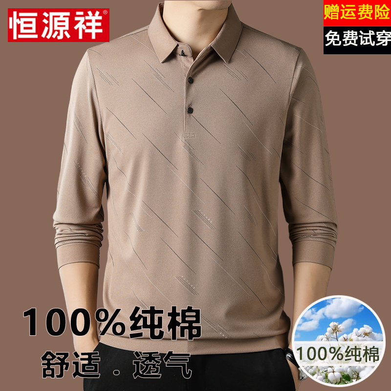 恒源祥纯棉长袖t恤男春秋季新款加绒中老年爸爸装宽松休闲polo衫