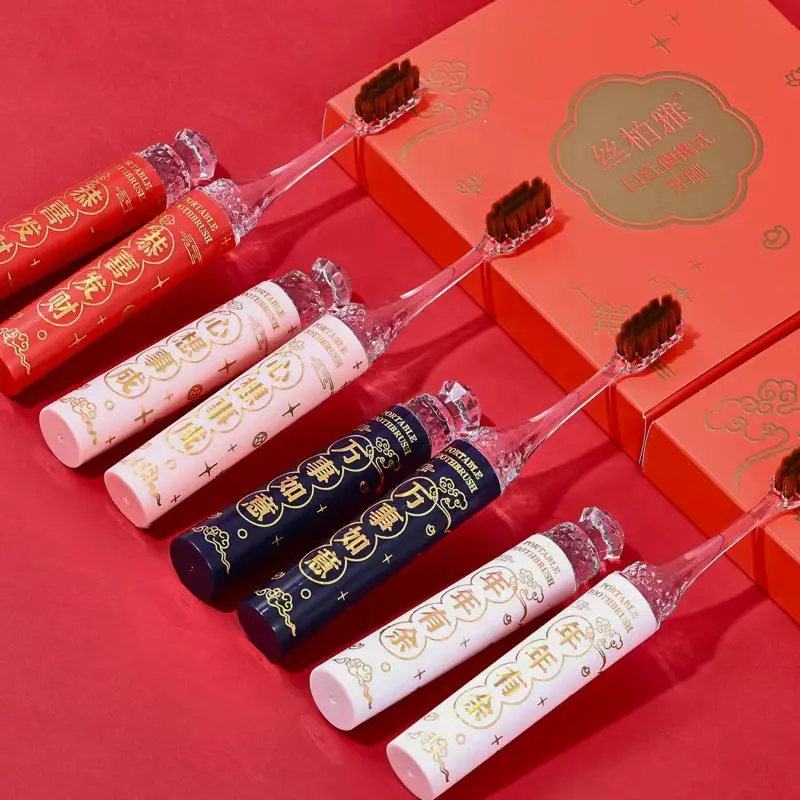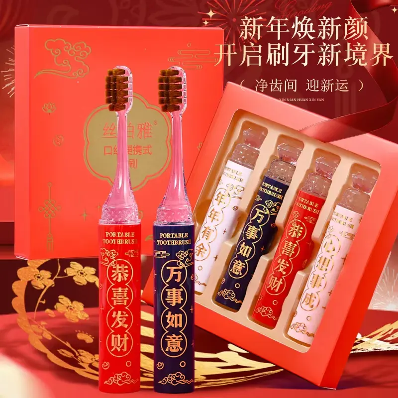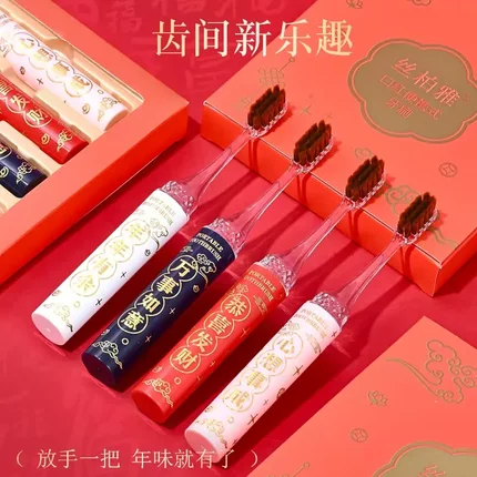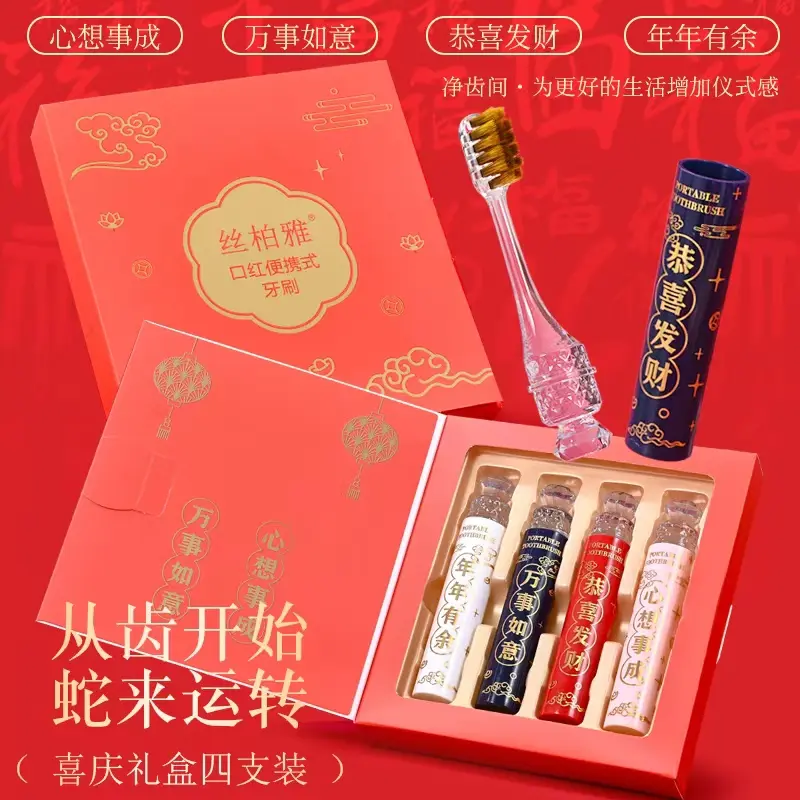【4支礼盒装】2025新款高档口红便携式软毛牙刷成人情侣过年家用