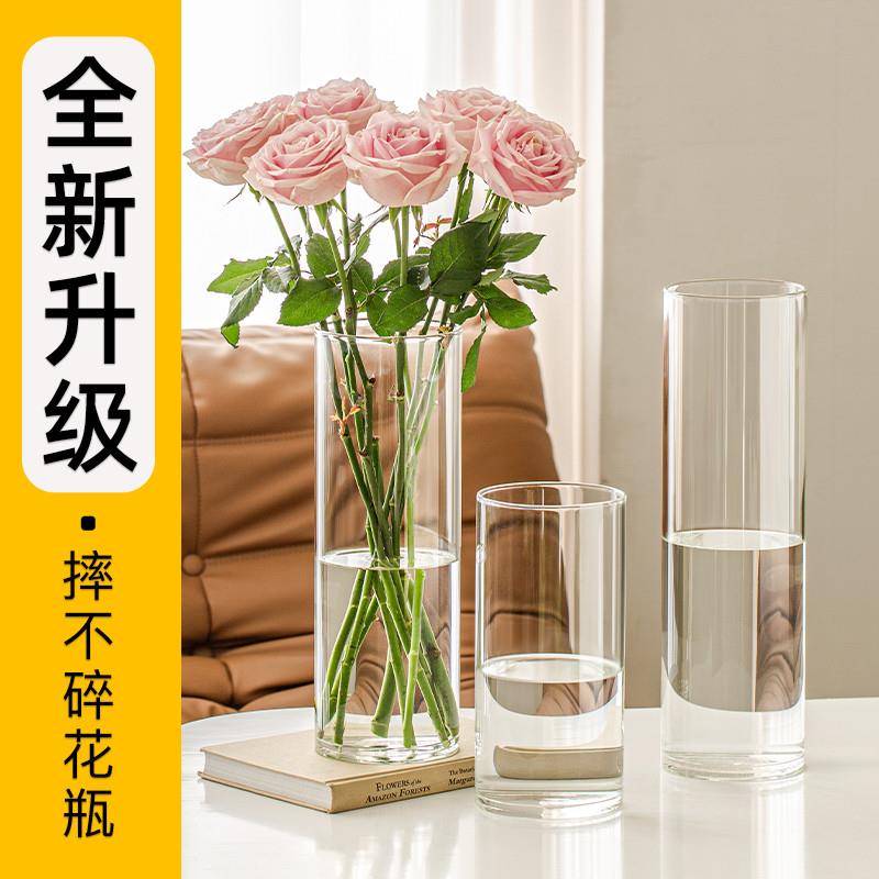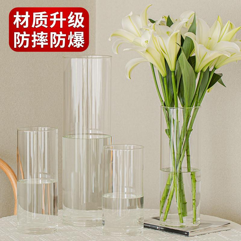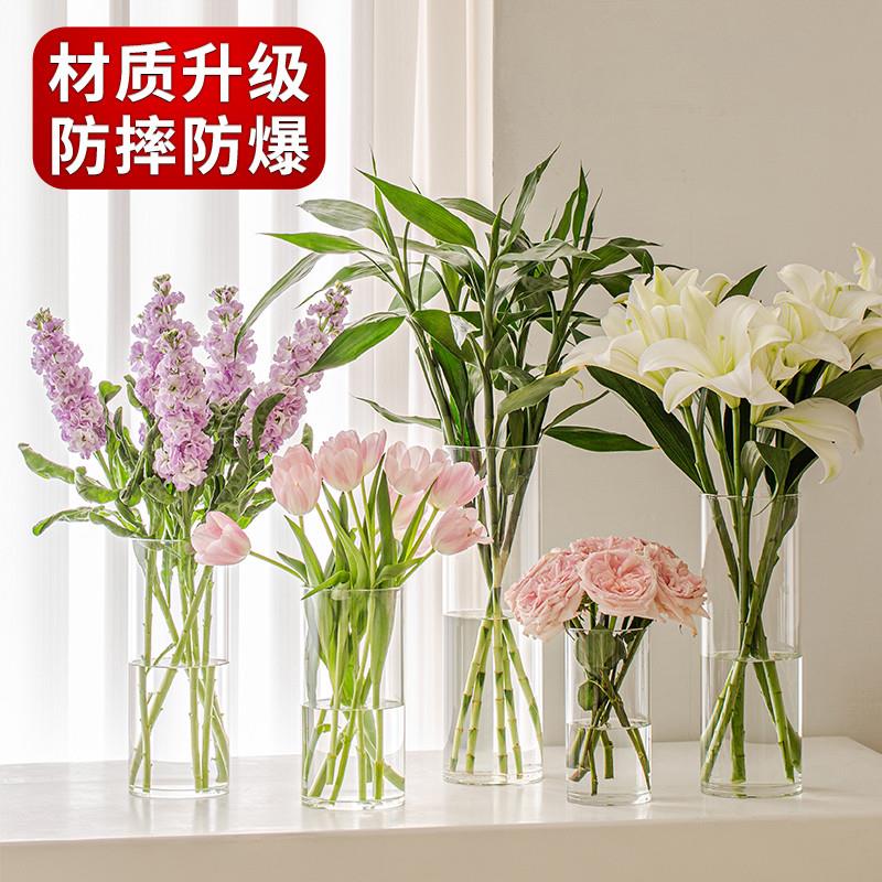 花瓶摆件客厅插花玻璃亚克力透明醒花桶富贵竹百合水养轻奢圆柱筒