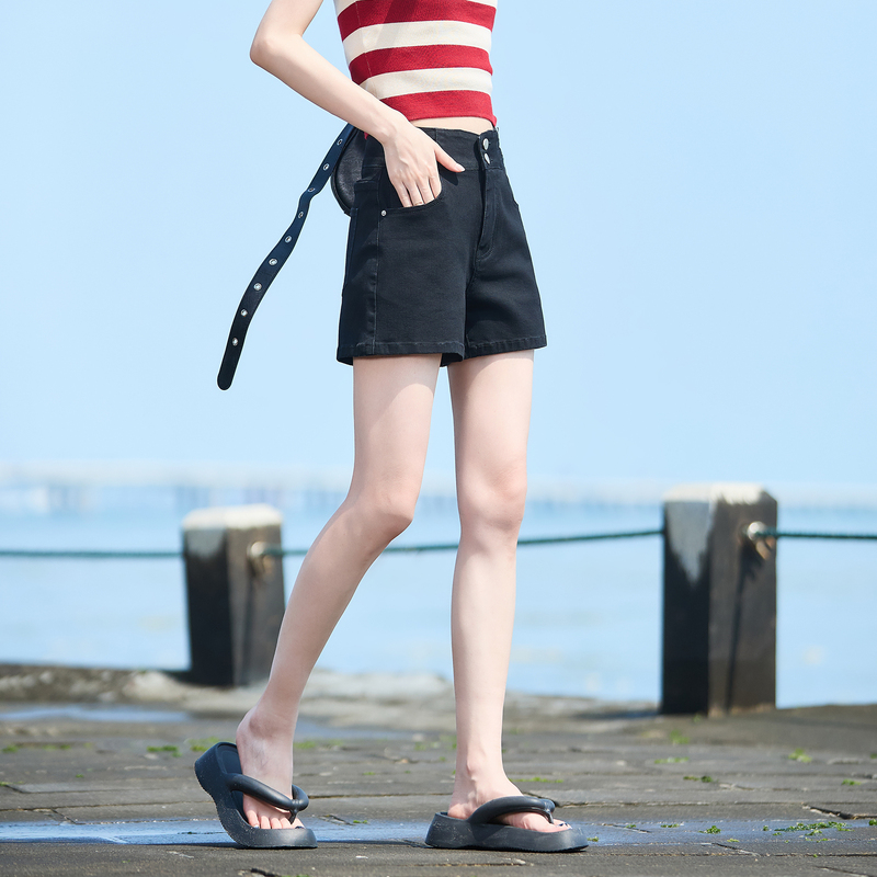 唐狮春夏季新款高腰牛仔短裤女显瘦潮酷时尚辣妹百搭黑色裤子女