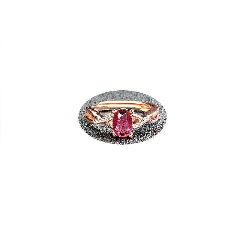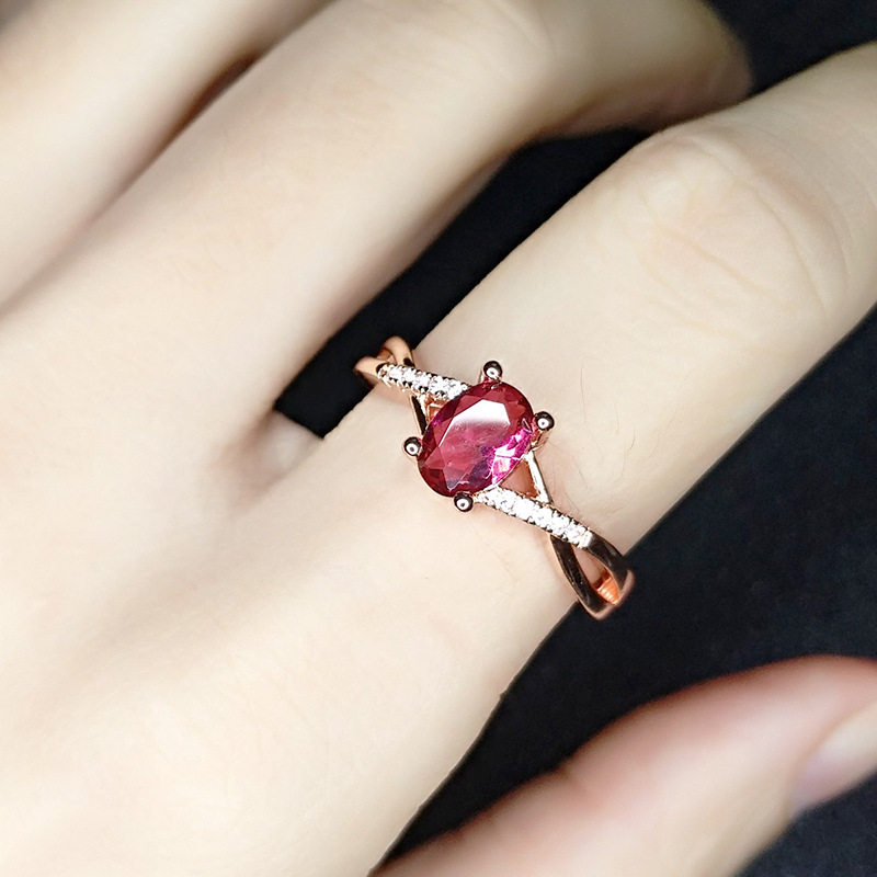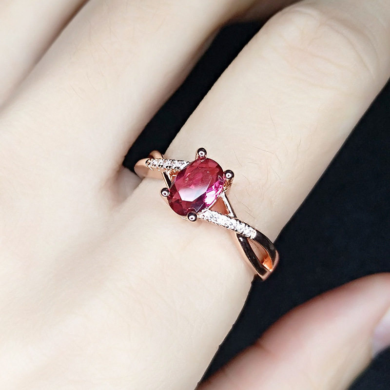 欧美时尚仿红宝石镀玫瑰金红碧玺求婚订婚结婚戒指少女甜美钻戒