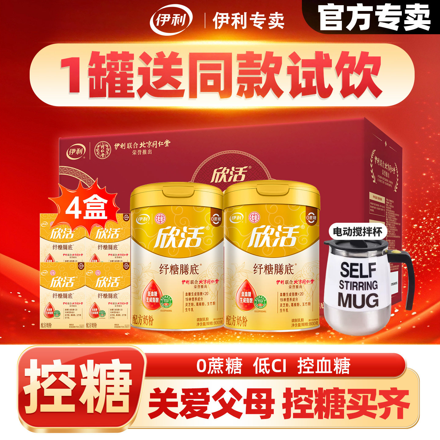 伊利欣活纾糖膳底中老年成人高钙奶粉800g2罐年货礼盒低GI无蔗糖