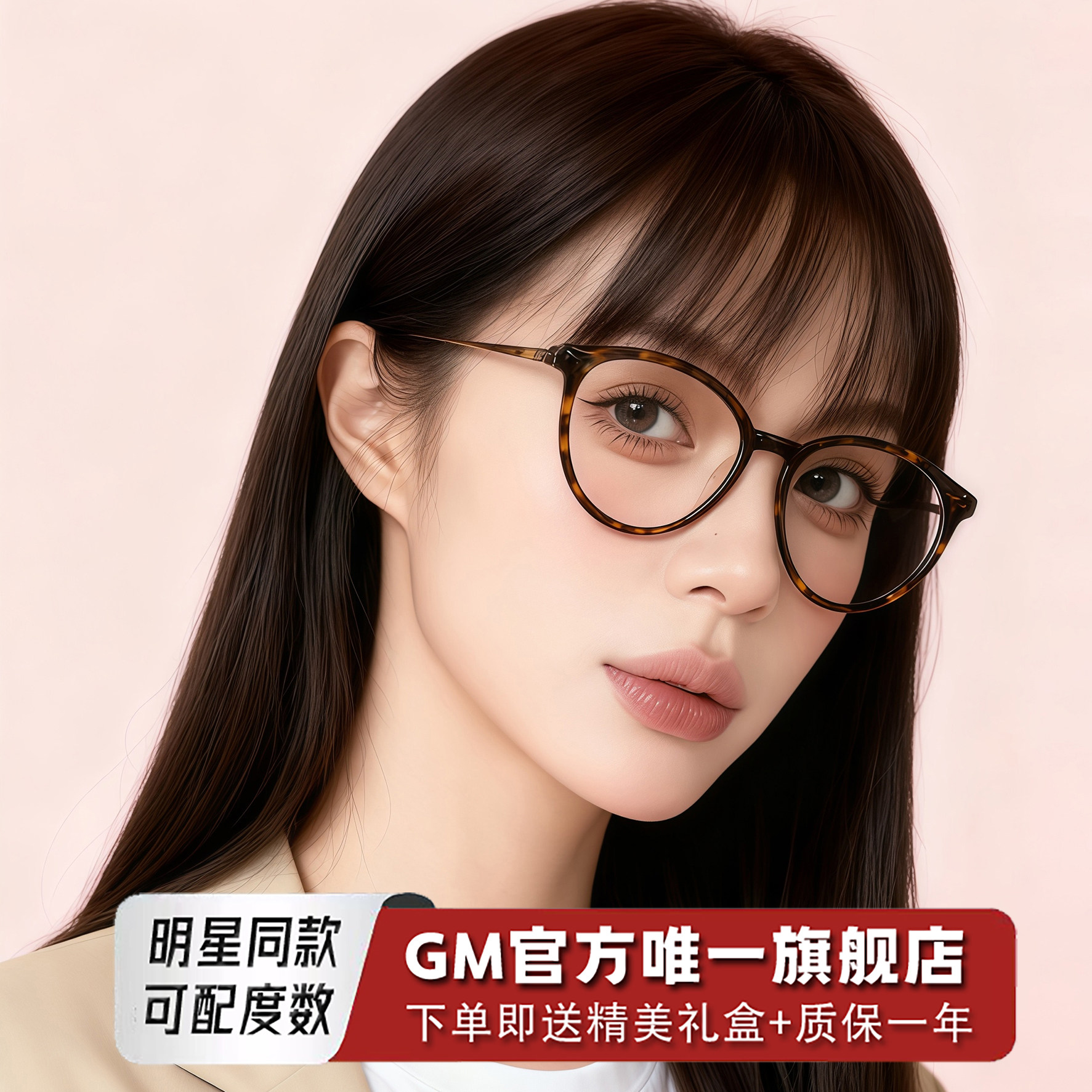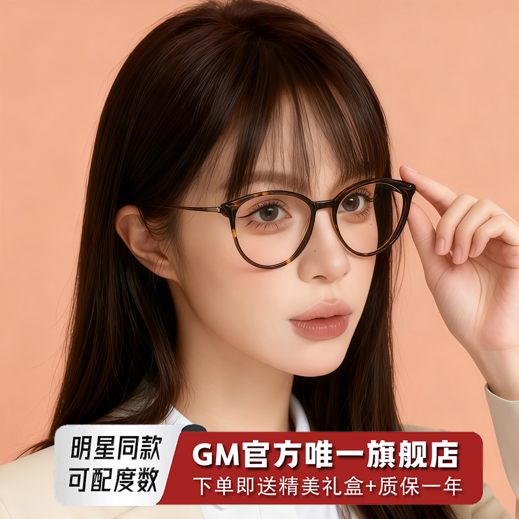GM眼镜玳瑁框明星同款女士猫眼素颜防蓝光平光镜可配近视度数WGN