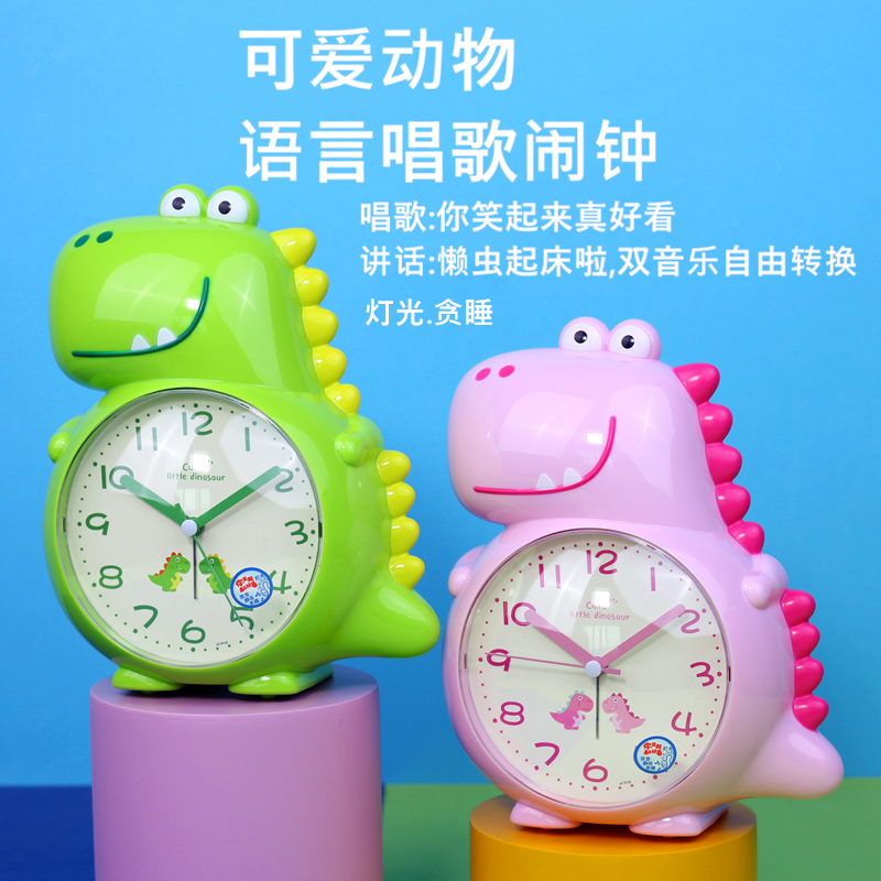 创意闹钟学生用语音卡通可爱儿童床头静音灯光会唱歌说话贪睡双音