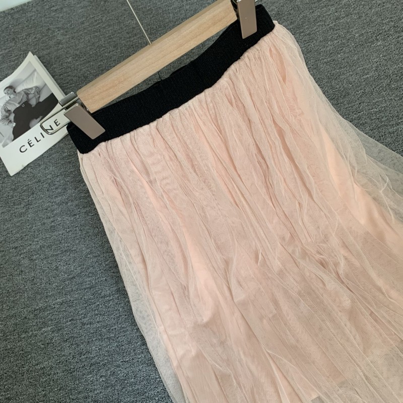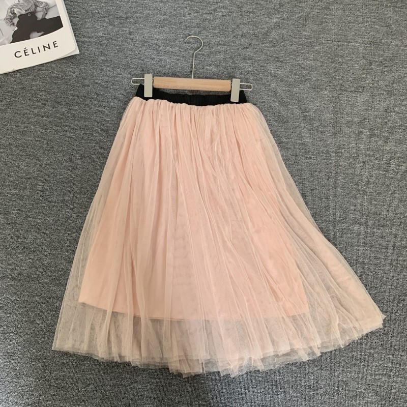 日系短款纱裙大裙摆松紧腰仙女半身裙夏季款百褶裙A字网纱裙