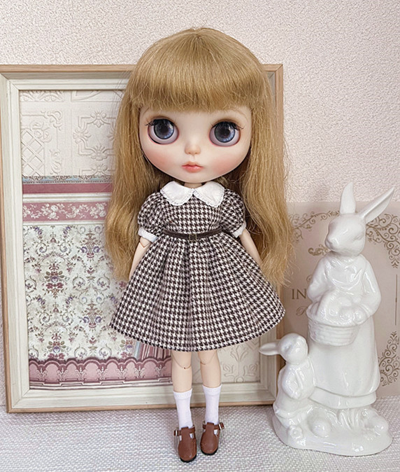 blythe小布娃娃衣服azone ob24 复古 法式连衣裙
