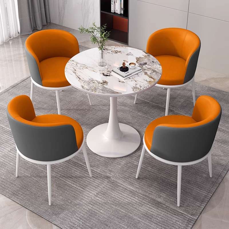 轻奢岩板洽谈桌椅组合会客谈判接待桌甜品店奶茶店餐桌阳台小圆桌