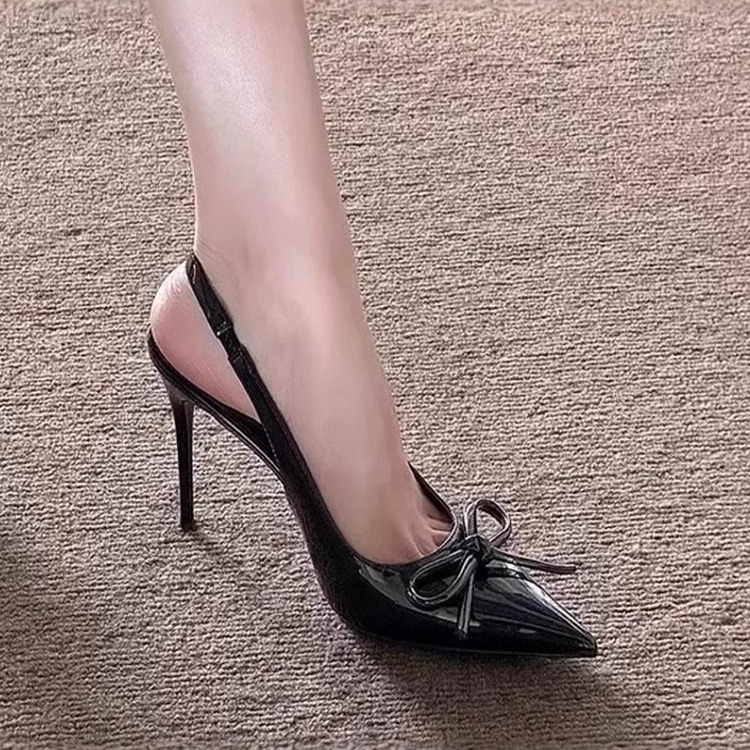 法式红色一字带高跟鞋蝴蝶结2025新款外穿绝美尖头细跟包头凉鞋女