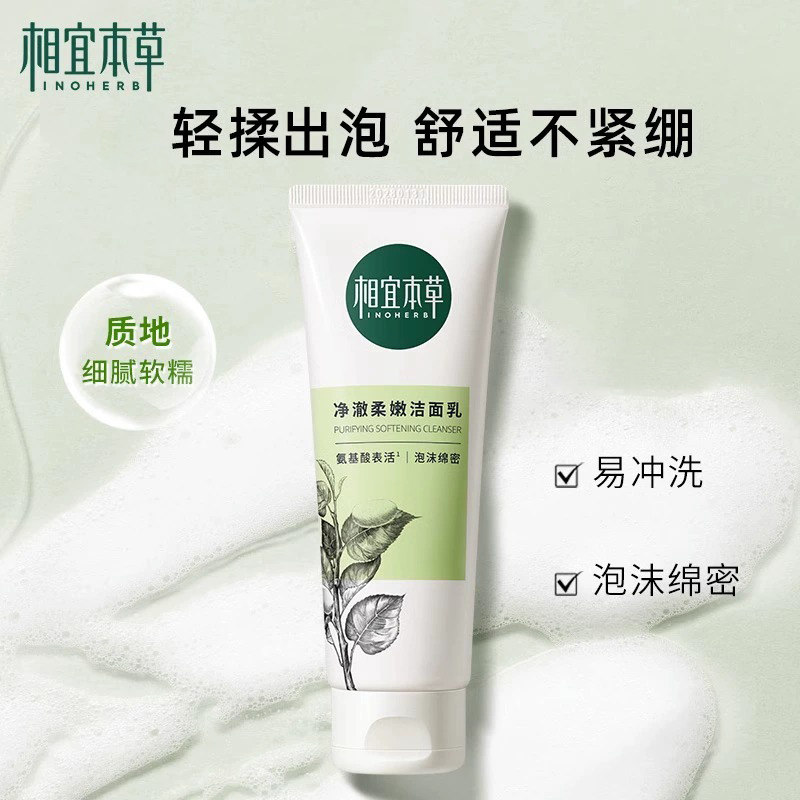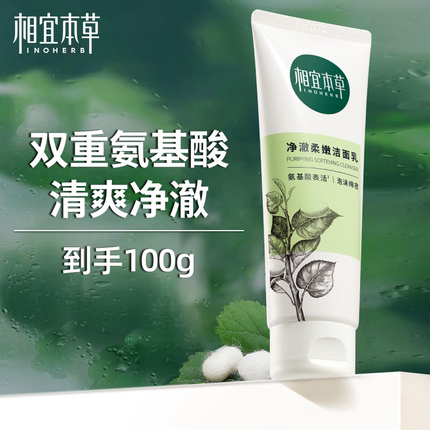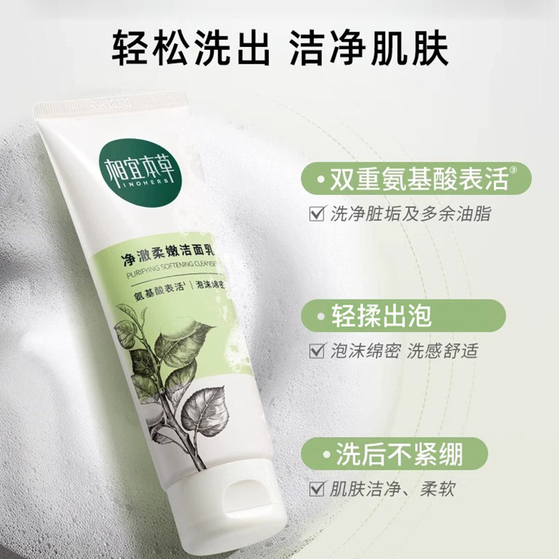 相宜本草洗面奶四倍蚕丝氨基酸洁面女清洁毛孔官方旗舰店正品官网