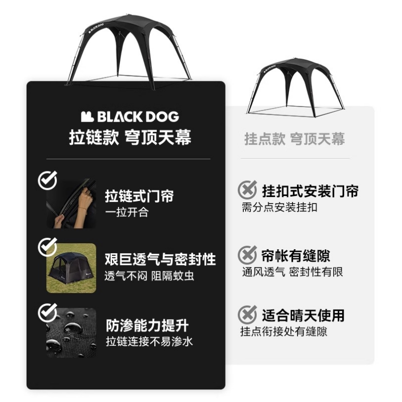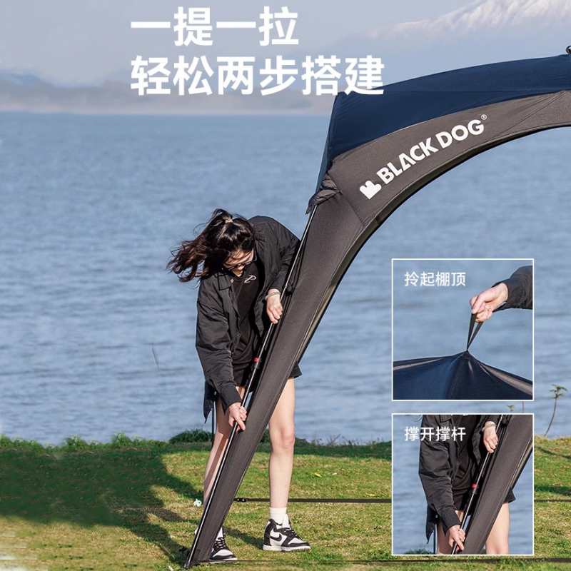 BLACKDOG黑狗户外拉链款穹顶天幕帐篷露营黑胶速开免搭天幕遮阳棚