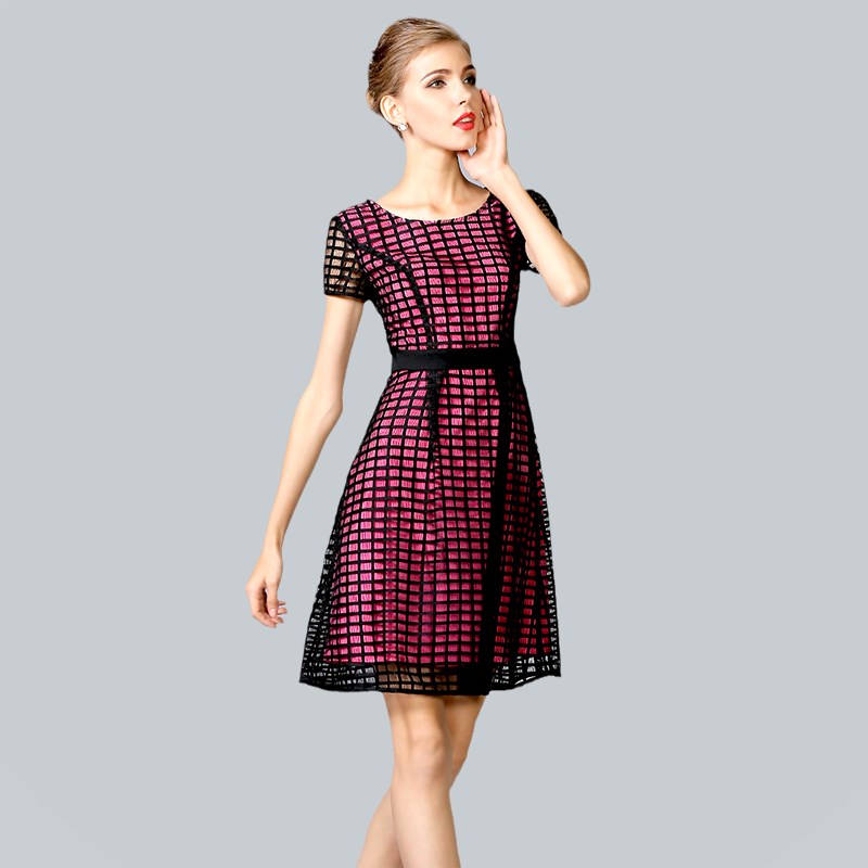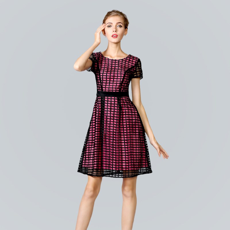 法式气质修身黑色弹力网纱拼接连衣裙女装夏季高级感新款大码胖mm
