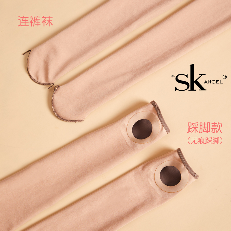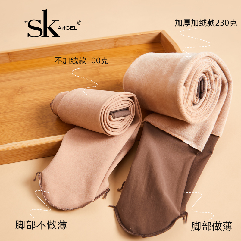 SK真假透肉春秋加厚加绒单层一体打底裤咖透肤灰透肤连裤袜踩脚女