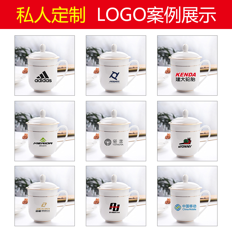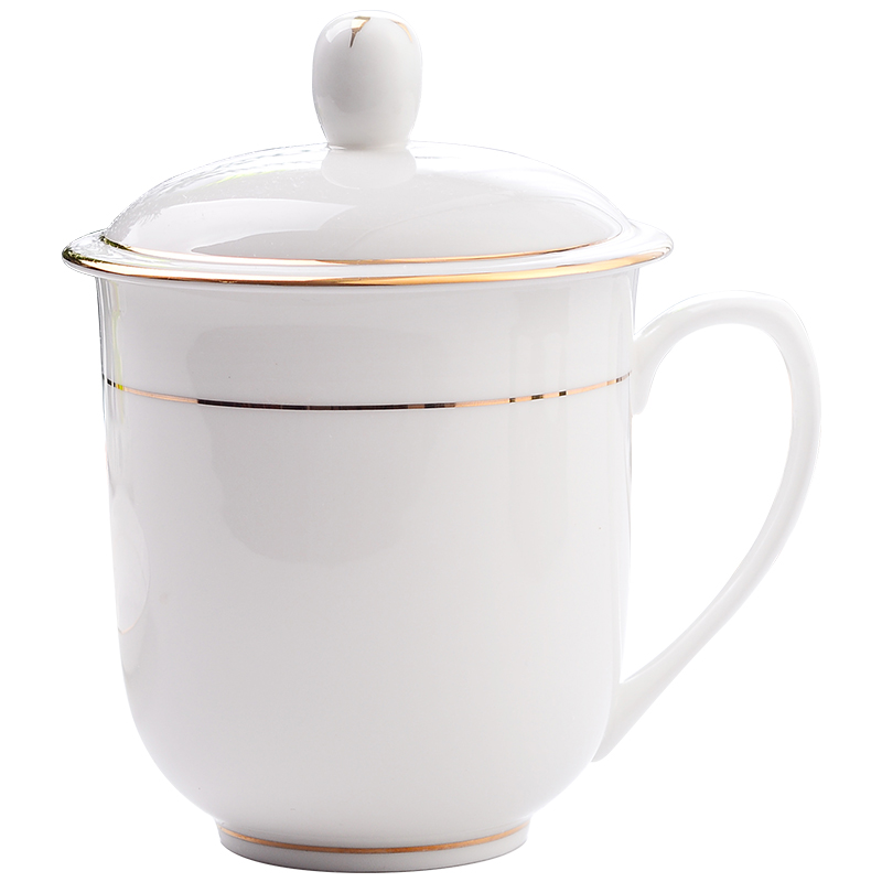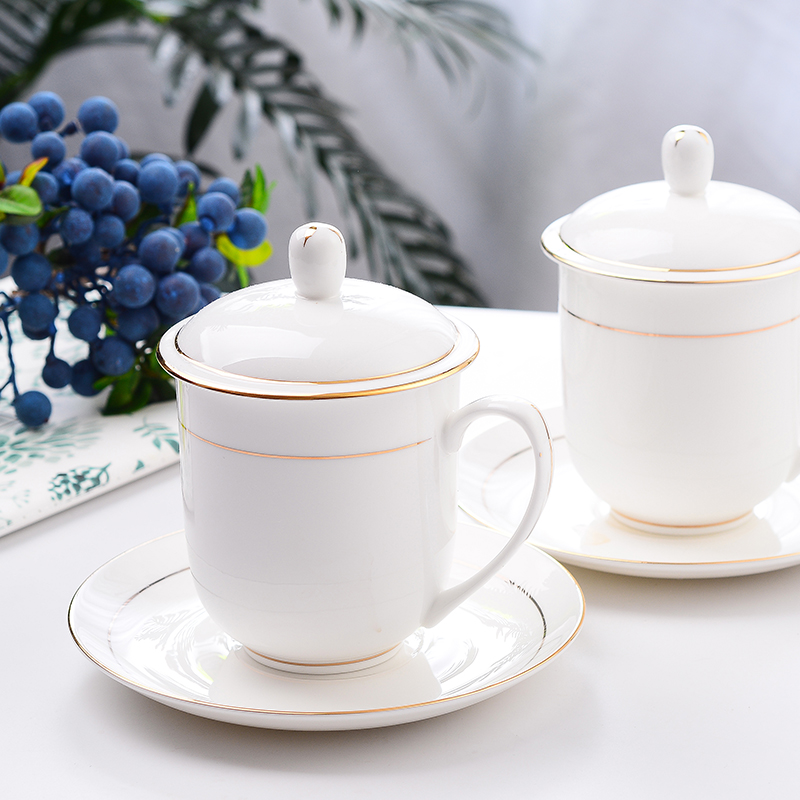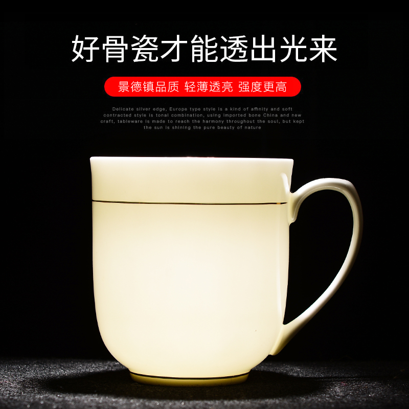 景德镇茶杯陶瓷带盖手绘金色骨瓷喝水杯金边杯子会议定制LOGO茶杯