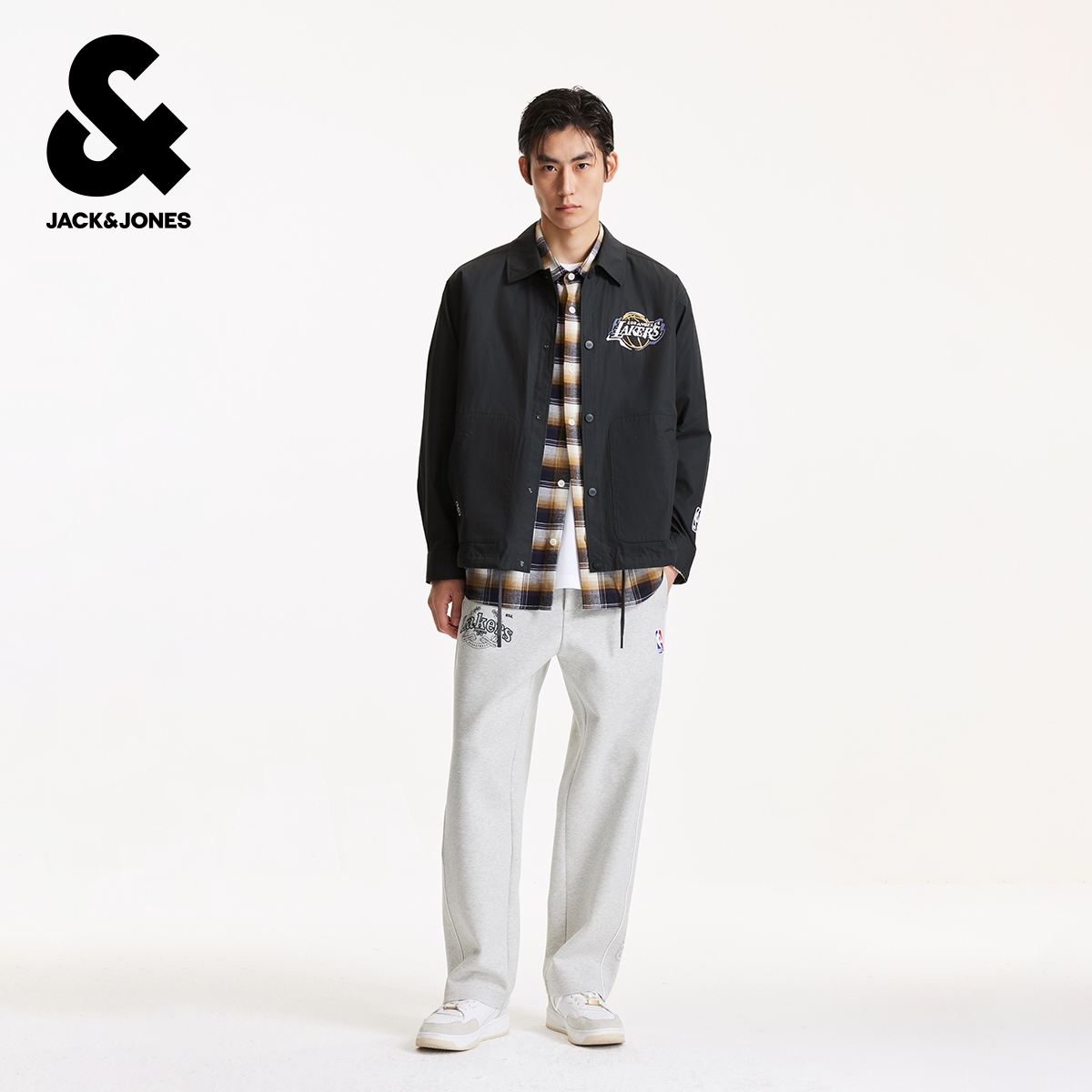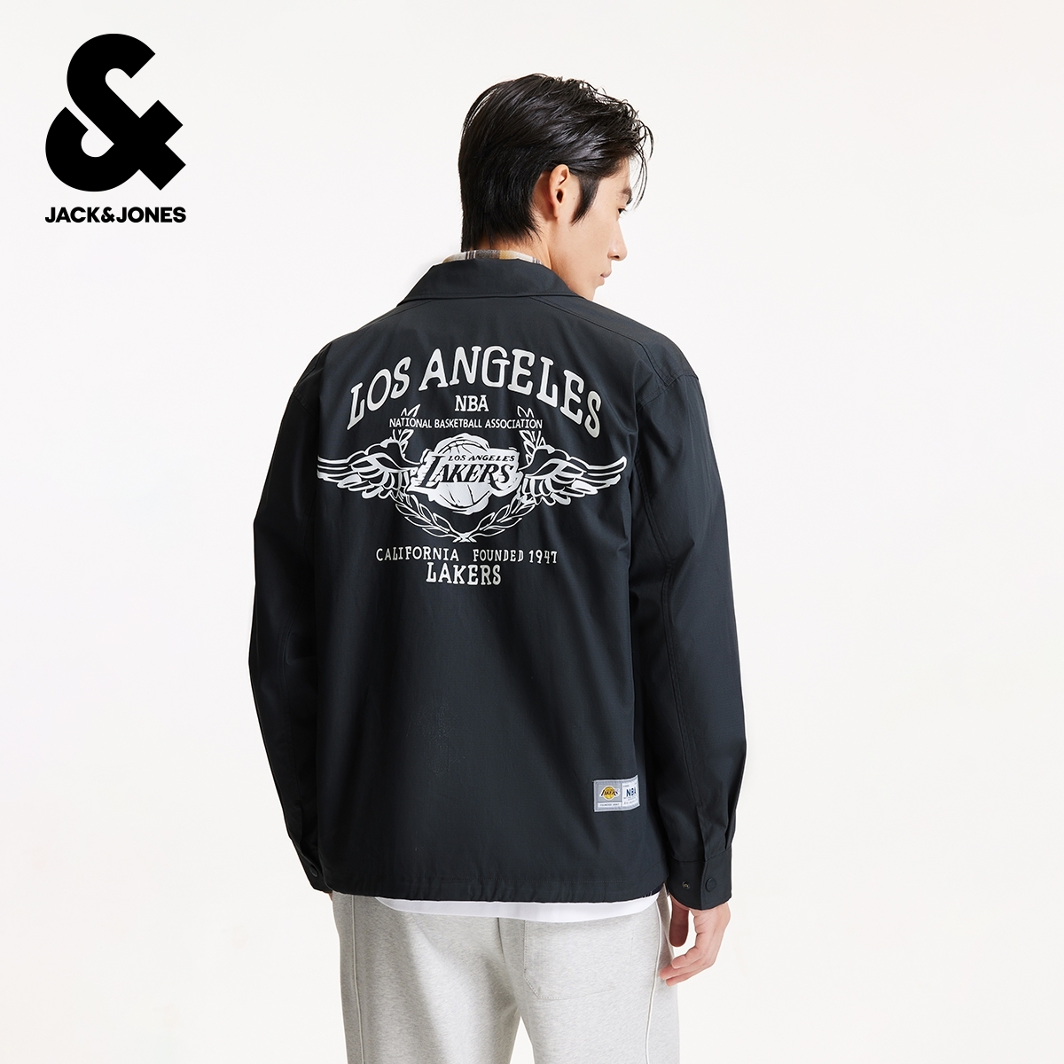 绫致杰克琼斯男NBA联名湖人队纯棉胶印休闲宽松翻领夹克外套