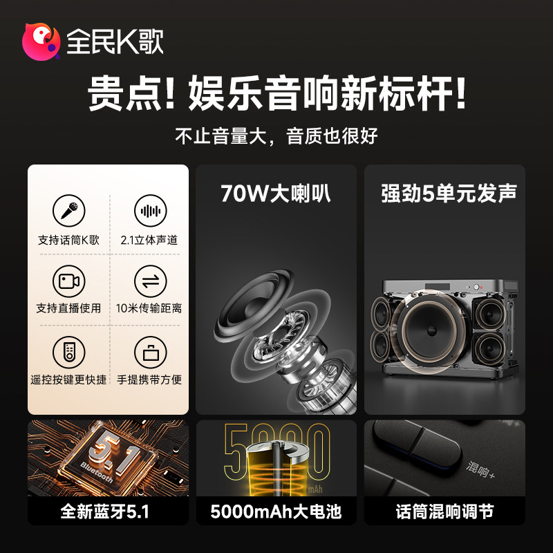 全民K歌YH51音响麦克风套装家用KTV唱歌娱乐话筒音响一体麦克风