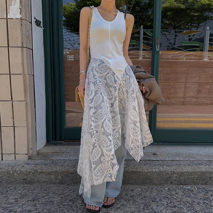 设计感拼接不规则蕾丝背心连衣裙