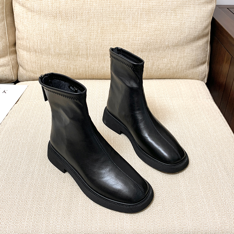 弹力瘦瘦靴韩版加绒粗跟方头短靴