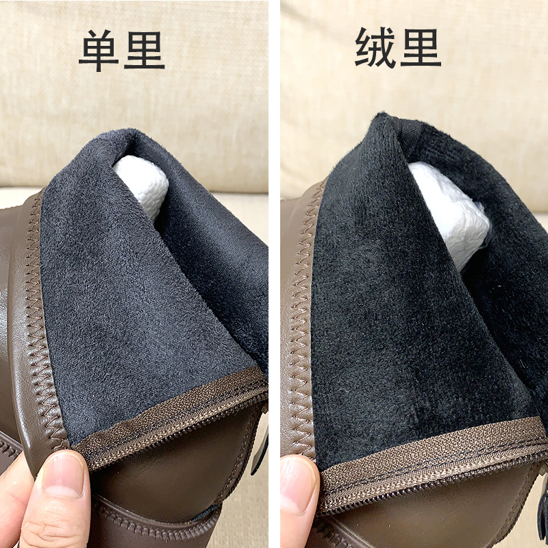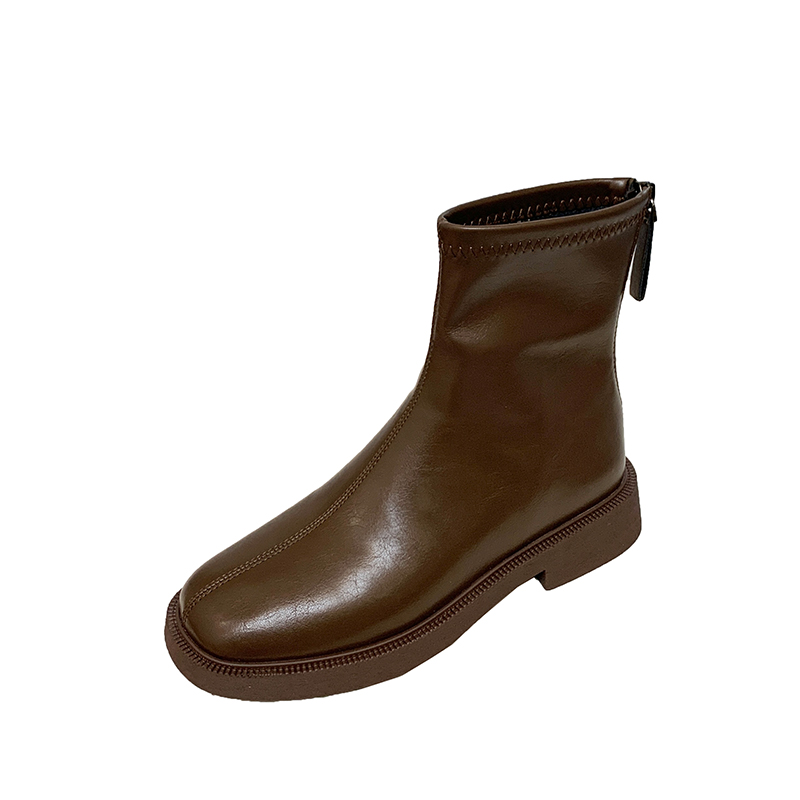 棕色粗跟短靴女2025秋冬新款韩版方头平底加绒瘦瘦马丁靴真皮单靴