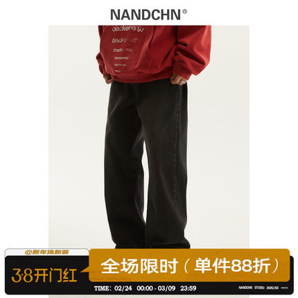 男道春秋新款美式潮流水洗直筒牛仔裤男士百搭宽松简约休闲长裤潮
