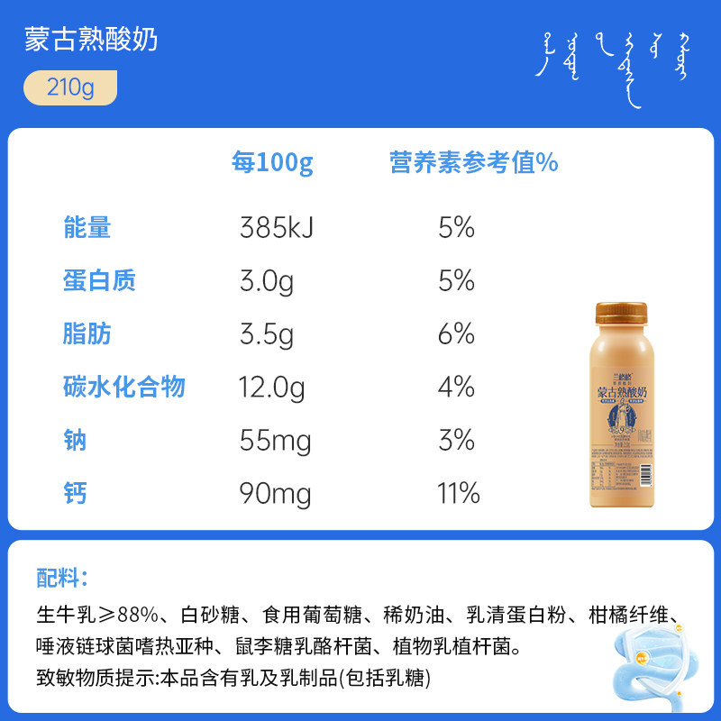 兰格格草原内蒙炭烧熟酸奶210g*12瓶酸奶便携小瓶便携随身装
